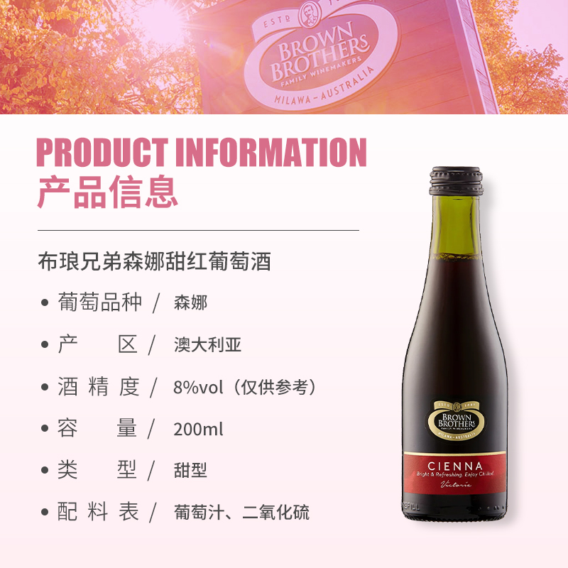 【自营】布琅兄弟森娜甜红葡萄酒澳大利亚原瓶进口红酒小瓶甜酒