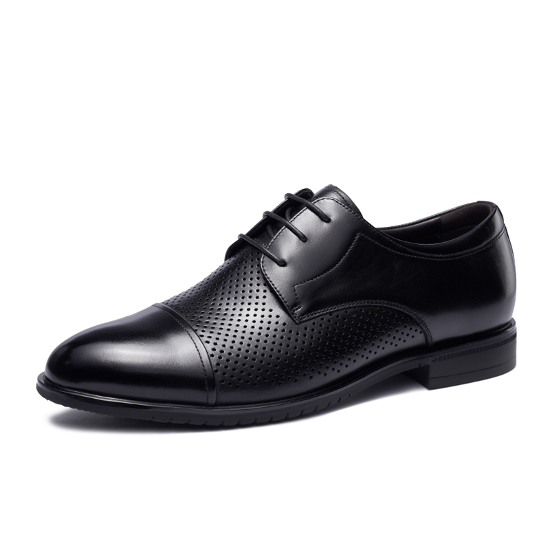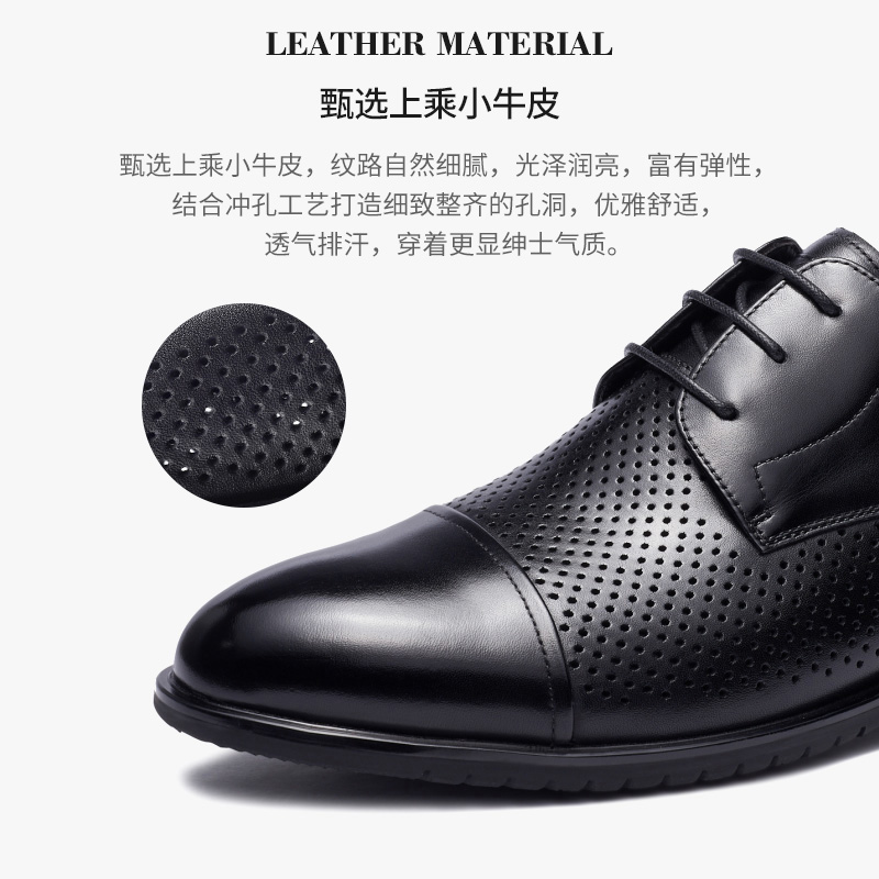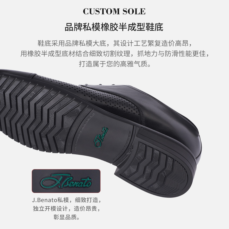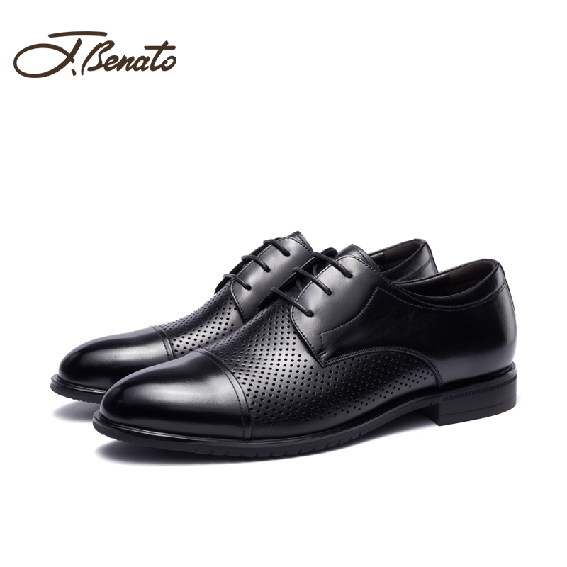 jbenato宾度男鞋夏季男士商务正装皮鞋男真皮镂空透气三接头黑色