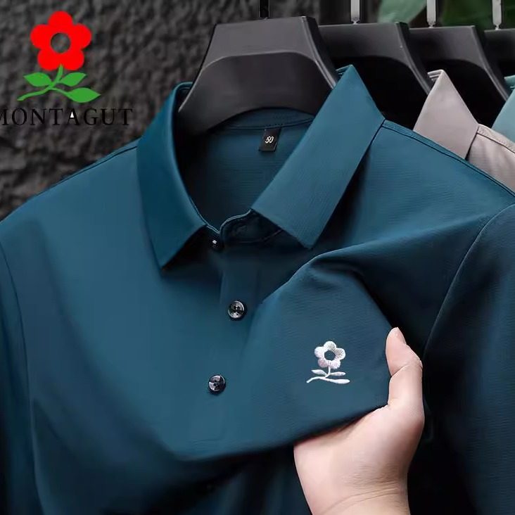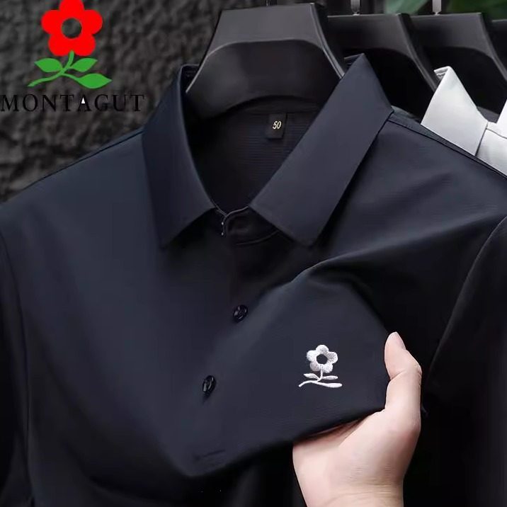 梦特娇高端桑蚕丝男士短袖T恤夏季新款2025中年翻领冰丝Polo衫薄