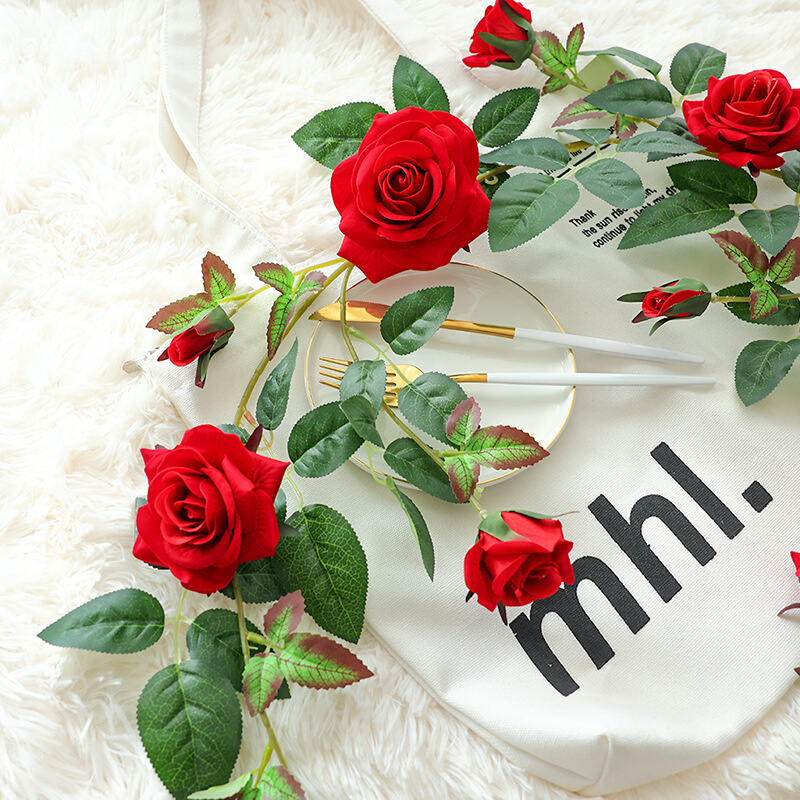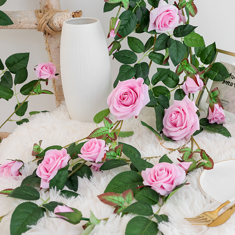 仿真玫瑰花藤假花藤条空调栅栏吊花装饰藤蔓管子塑料高档墙面遮挡