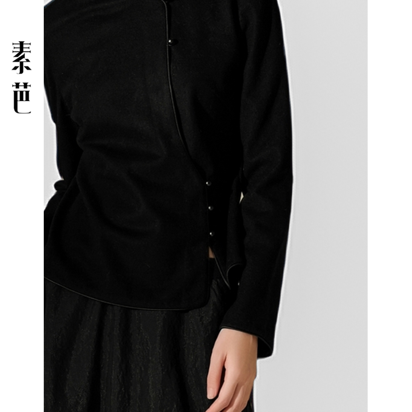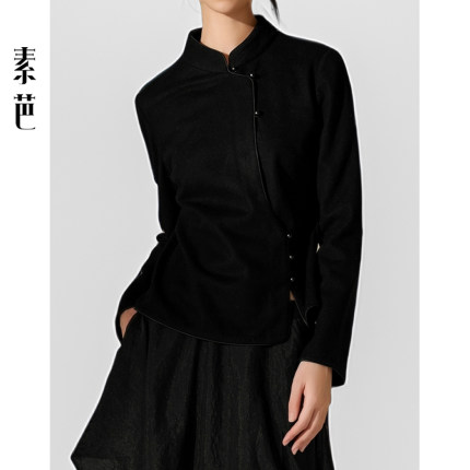 素芭中式小立领斜襟针织衫女秋季简约纯色休闲百搭优雅上衣SS0728