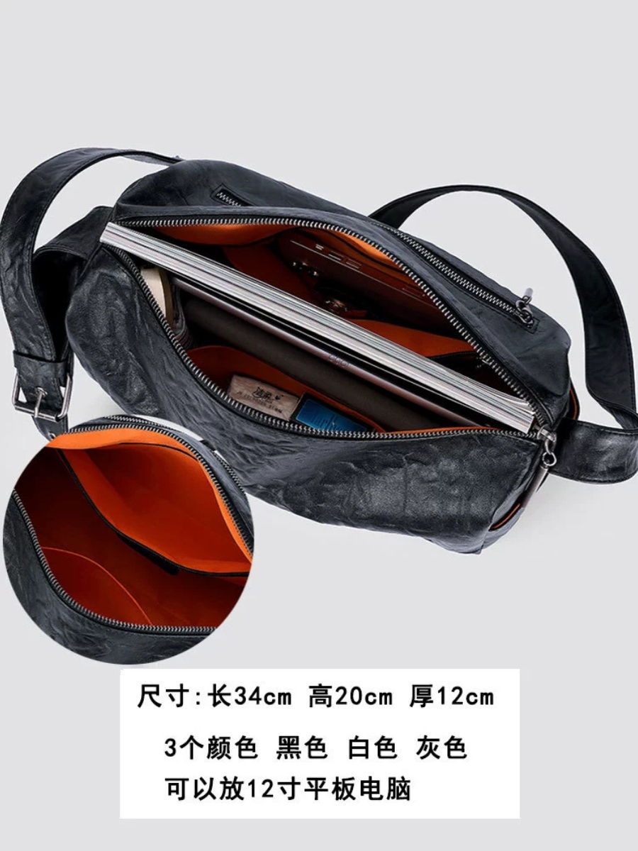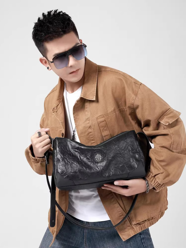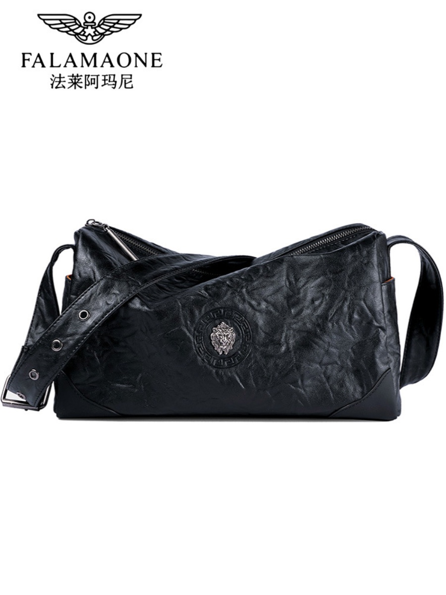 黑色单肩包法莱阿玛尼男士真皮包休闲时尚通勤小背包百搭牛皮包包