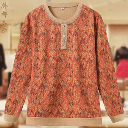 中年妈妈薄款卫衣女春秋装长袖打底衫加肥加大码中老年人上衣50岁