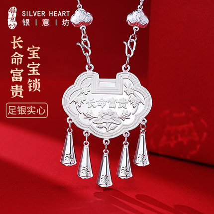 婴儿长命锁9999纯银实心吊坠长命富贵宝宝平安锁儿童银锁满月礼物