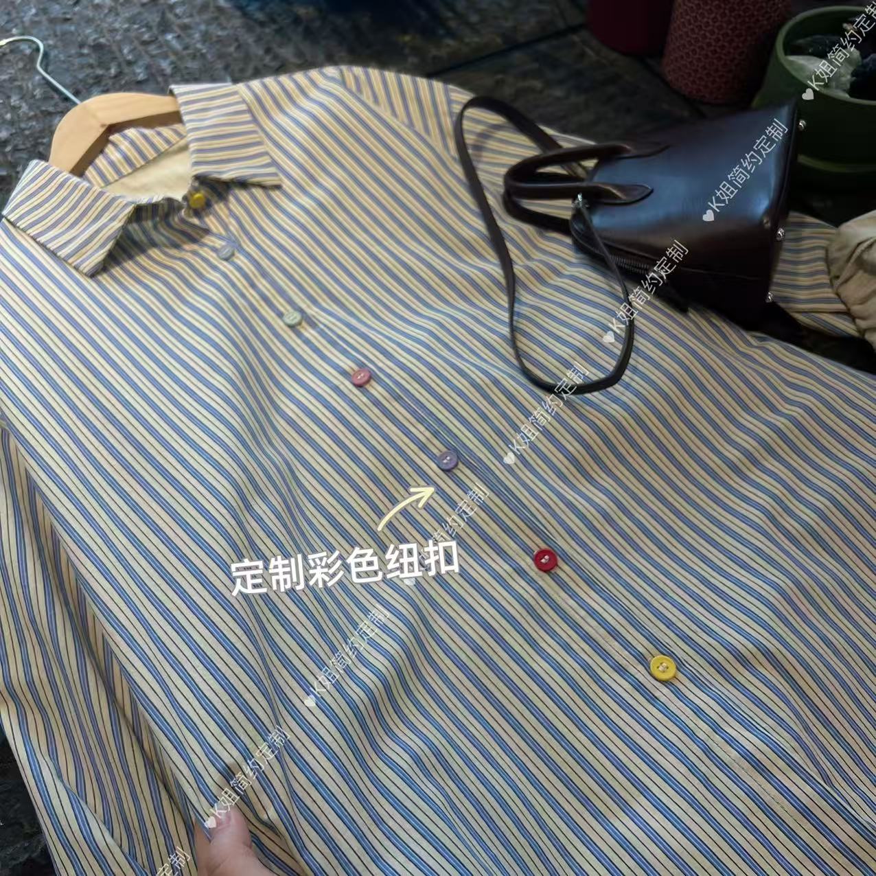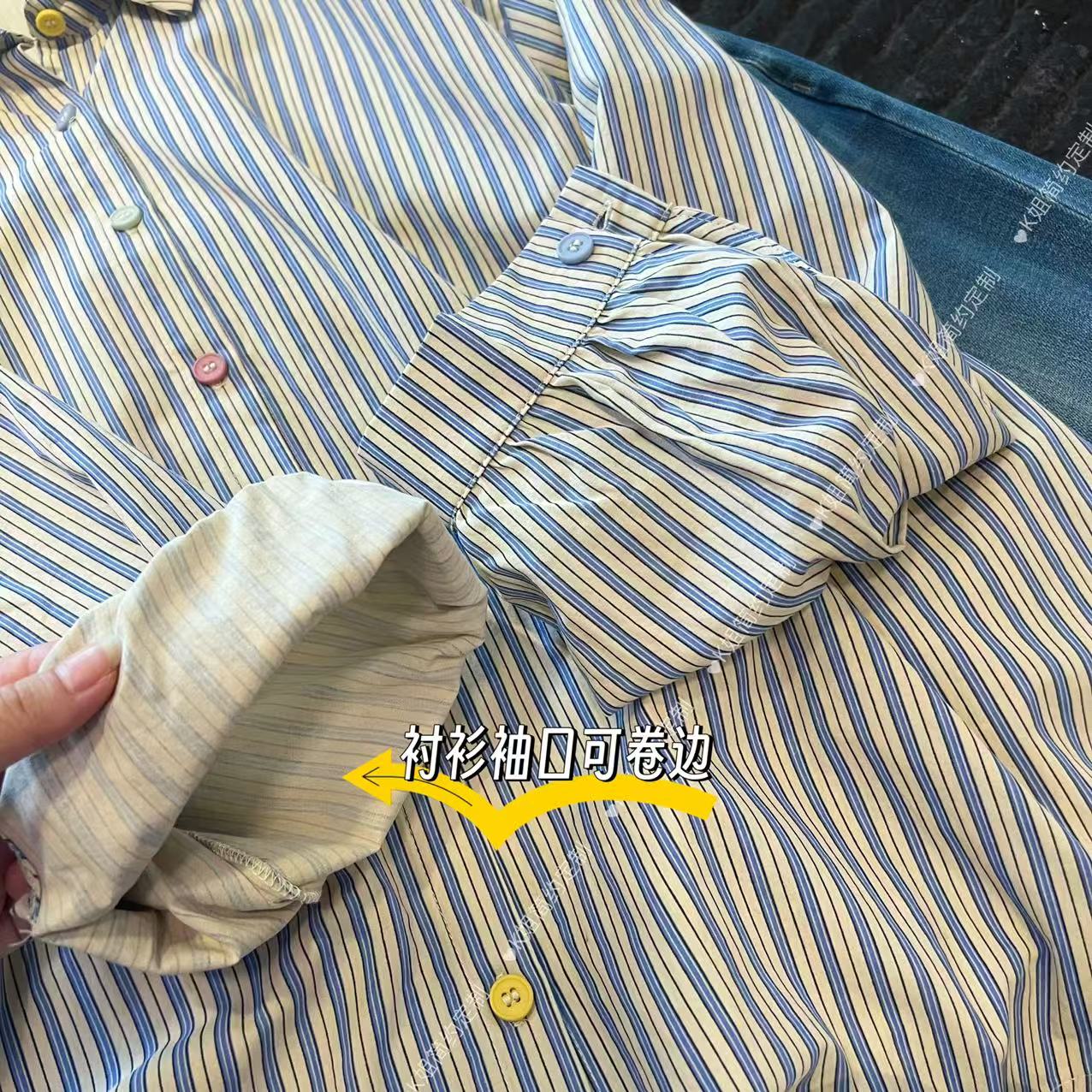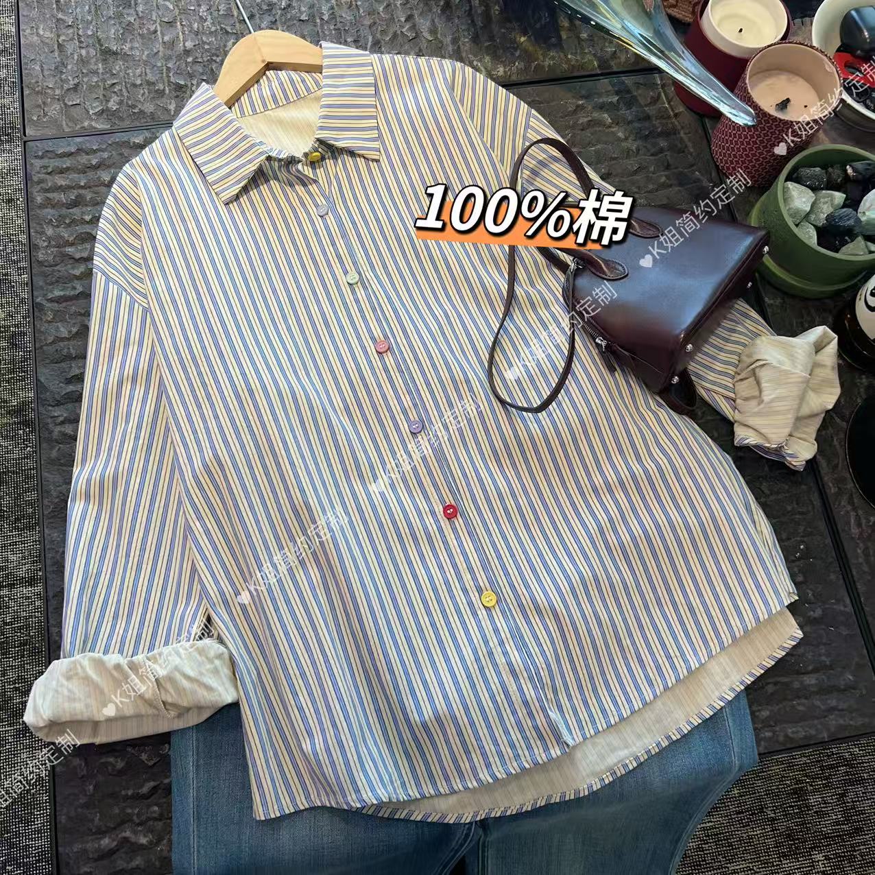 2025新款百搭显瘦纯棉条纹衬衫女设计感韩系衬衣小个子宽松外套