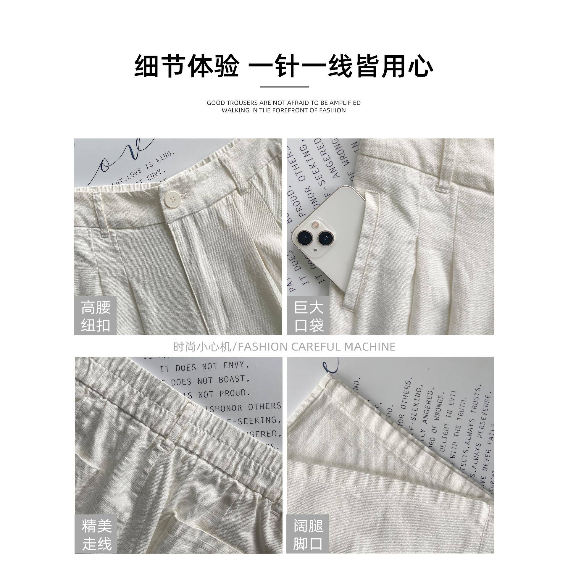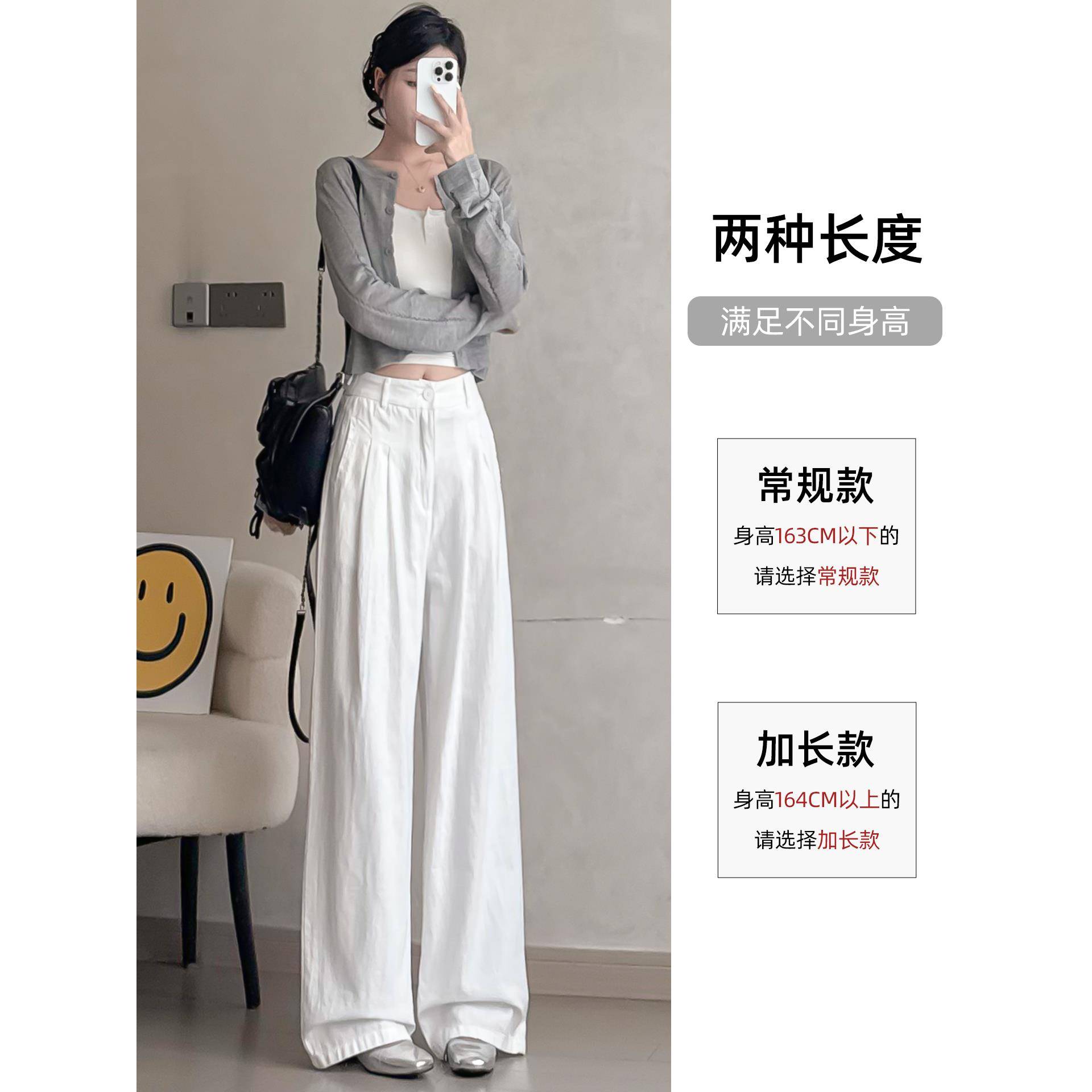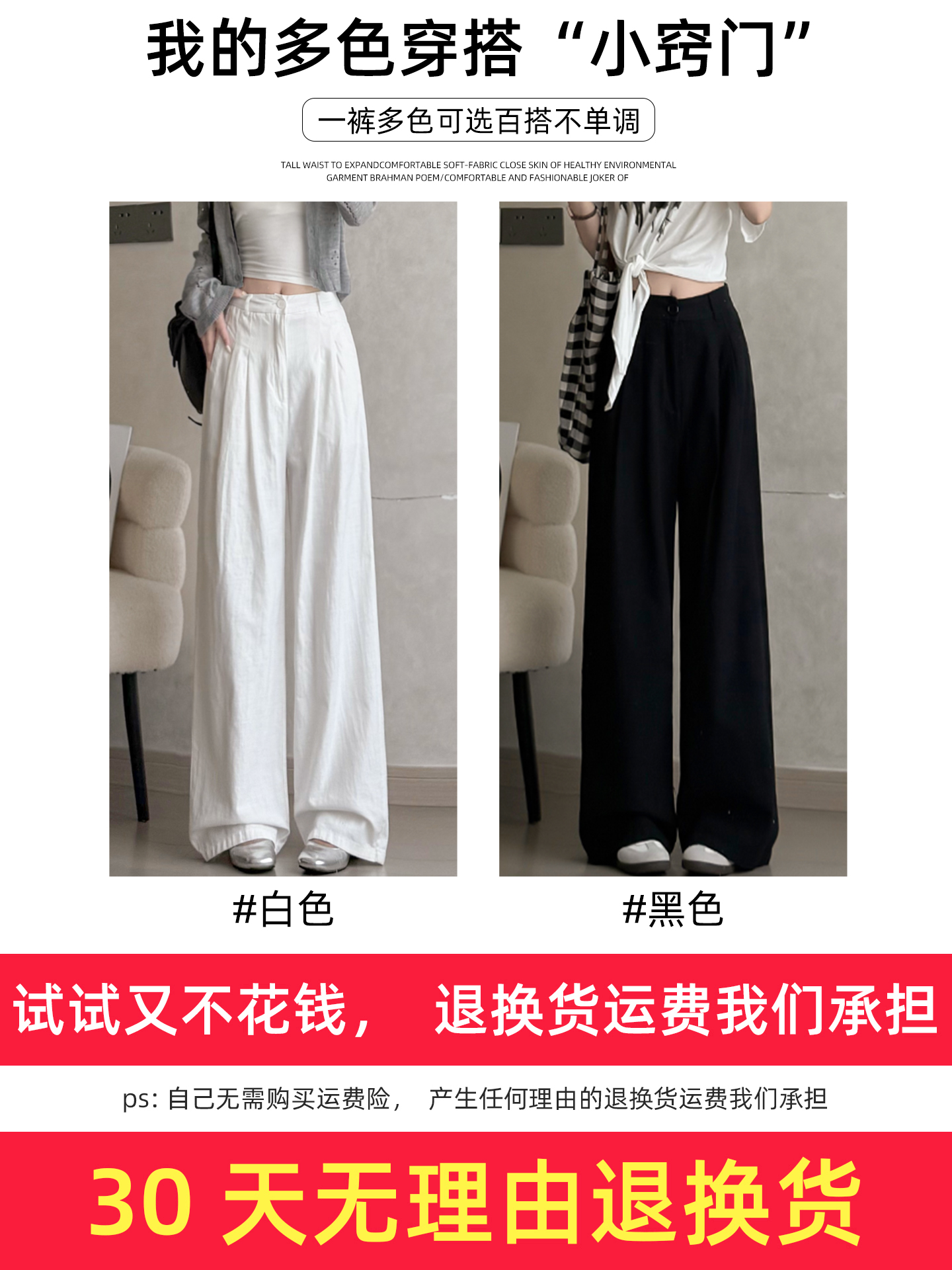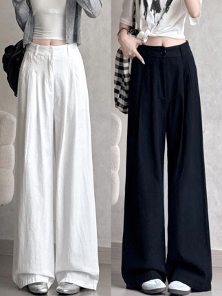 白色棉麻西装裤女夏季薄款直筒高腰显瘦垂感老钱风宽松休闲阔腿裤