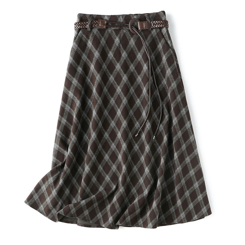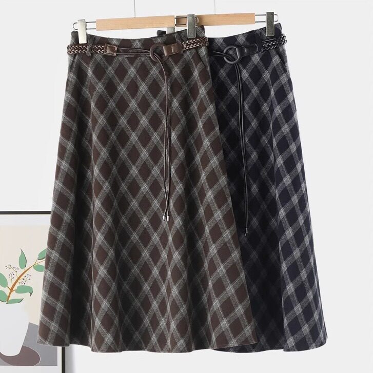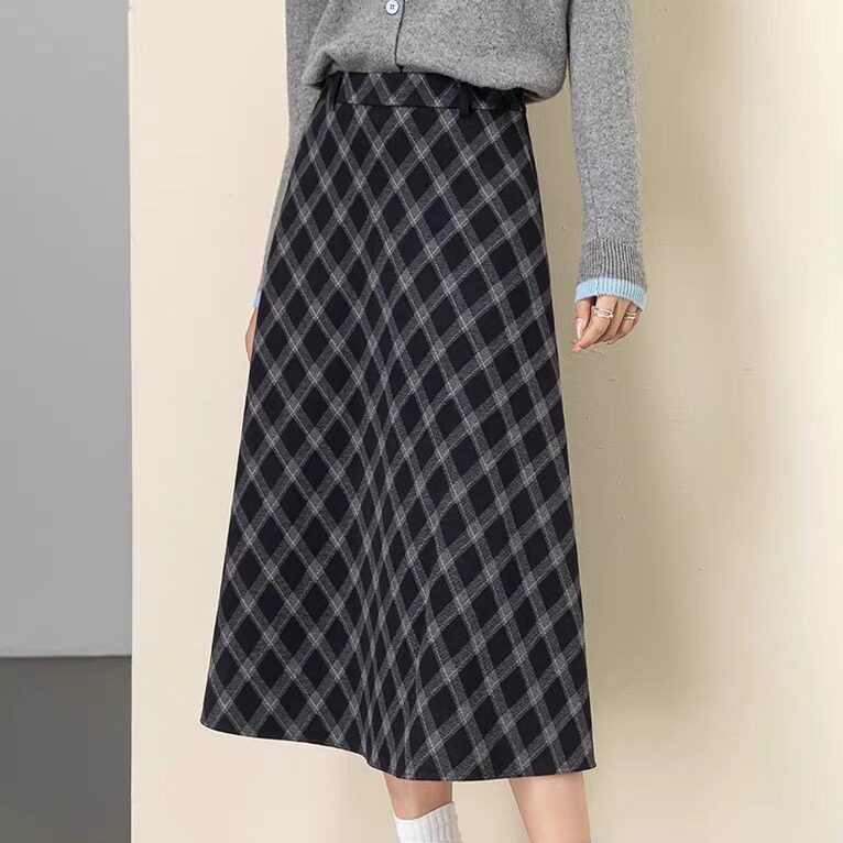 2025秋冬英伦复古格纹毛呢半身裙垂感A字裙设计感文艺风裙子