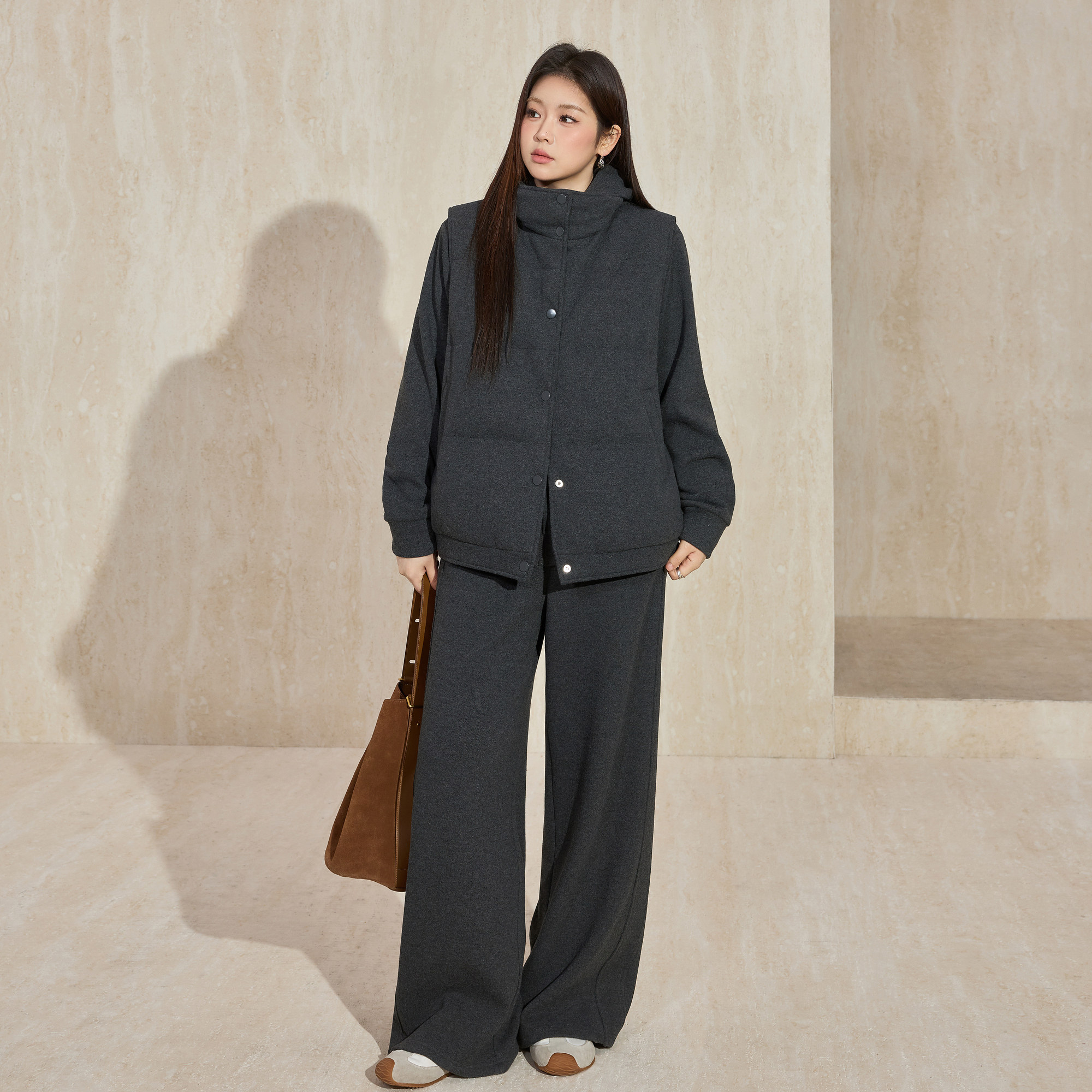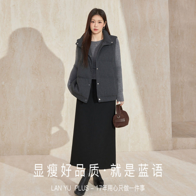 蓝语羽绒服马甲连帽卫衣长裤套装