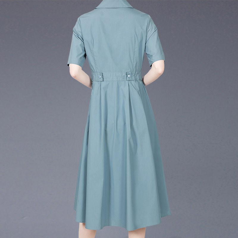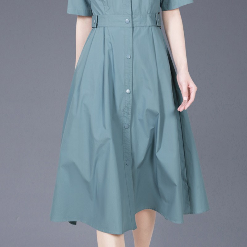 法式休闲气质连衣裙2025夏季新款高级收腰显瘦短袖中长款衬衫裙子