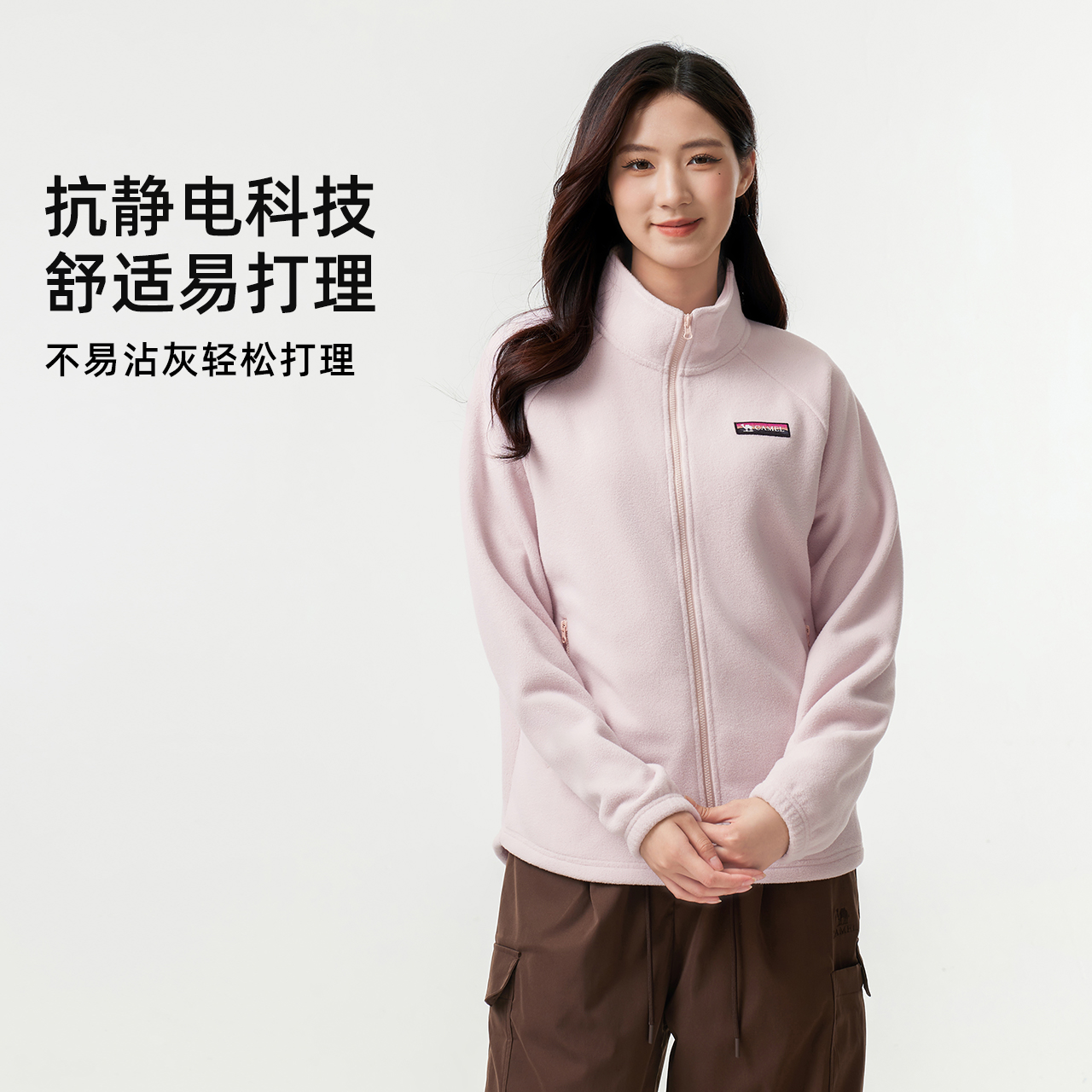 骆驼户外抓绒衣外套女双面摇粒绒保暖抗静电立领防风冲锋衣内胆男