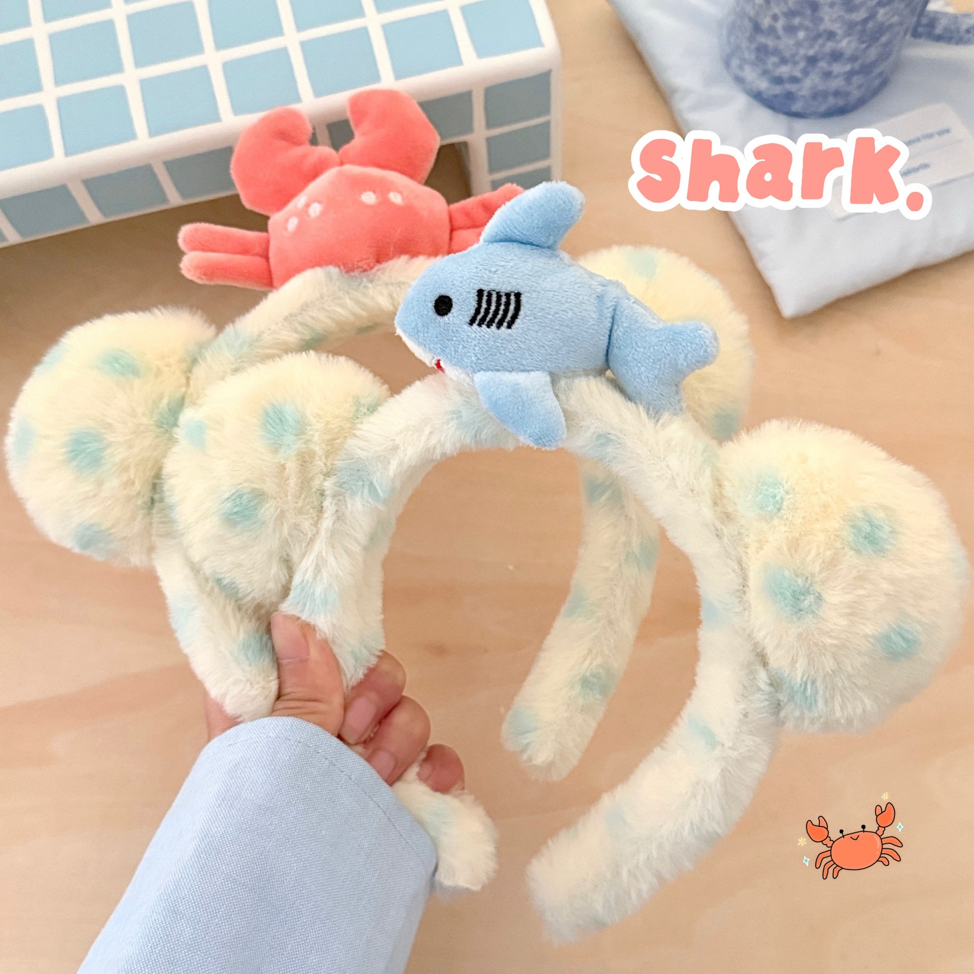 活动礼品可爱洗脸鲨鱼小蟹发箍发饰敷面膜头箍创意搞怪毛绒拍照