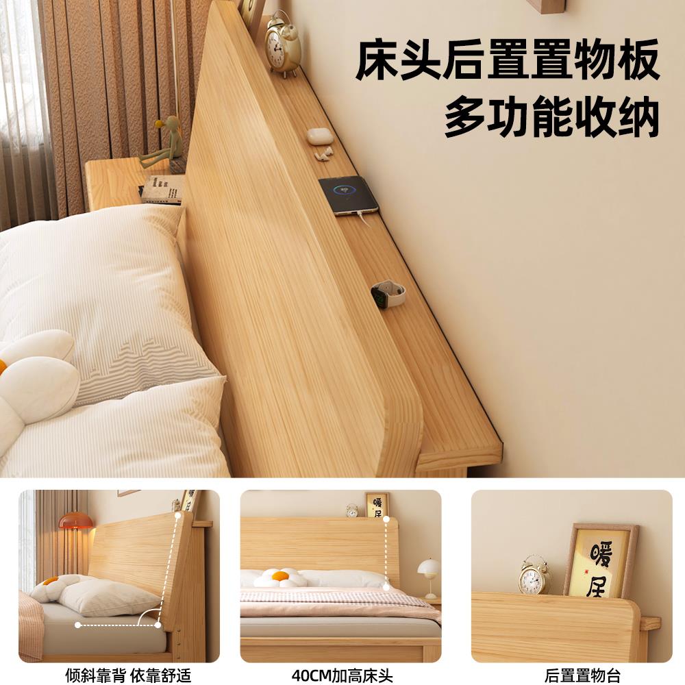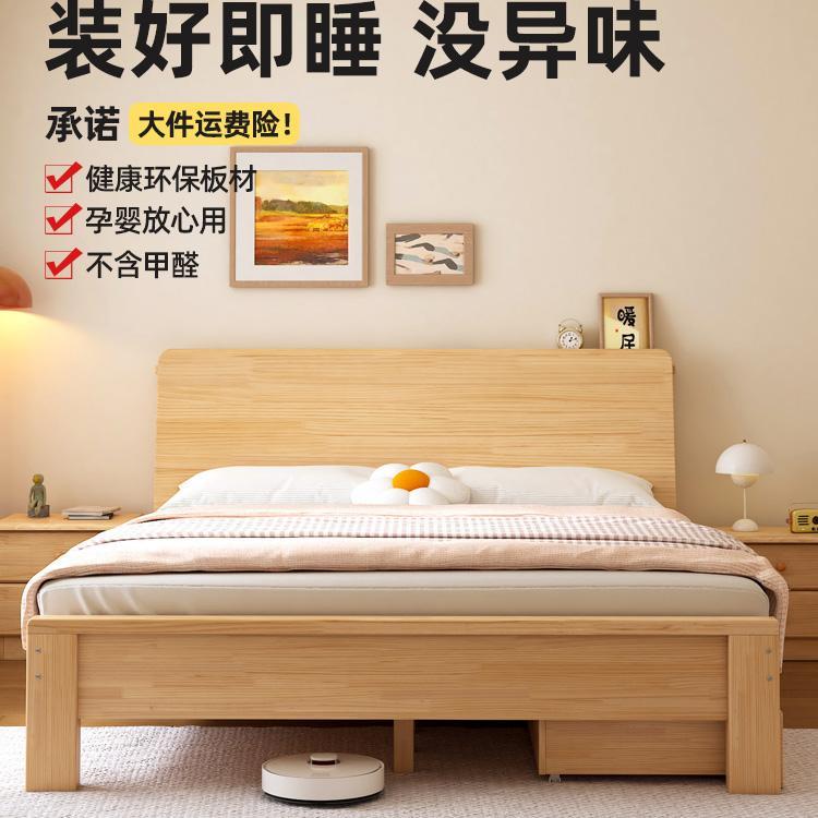 全实木床1.5米双人床简约现代出租房用单人床1米2家用1.8储物大床
