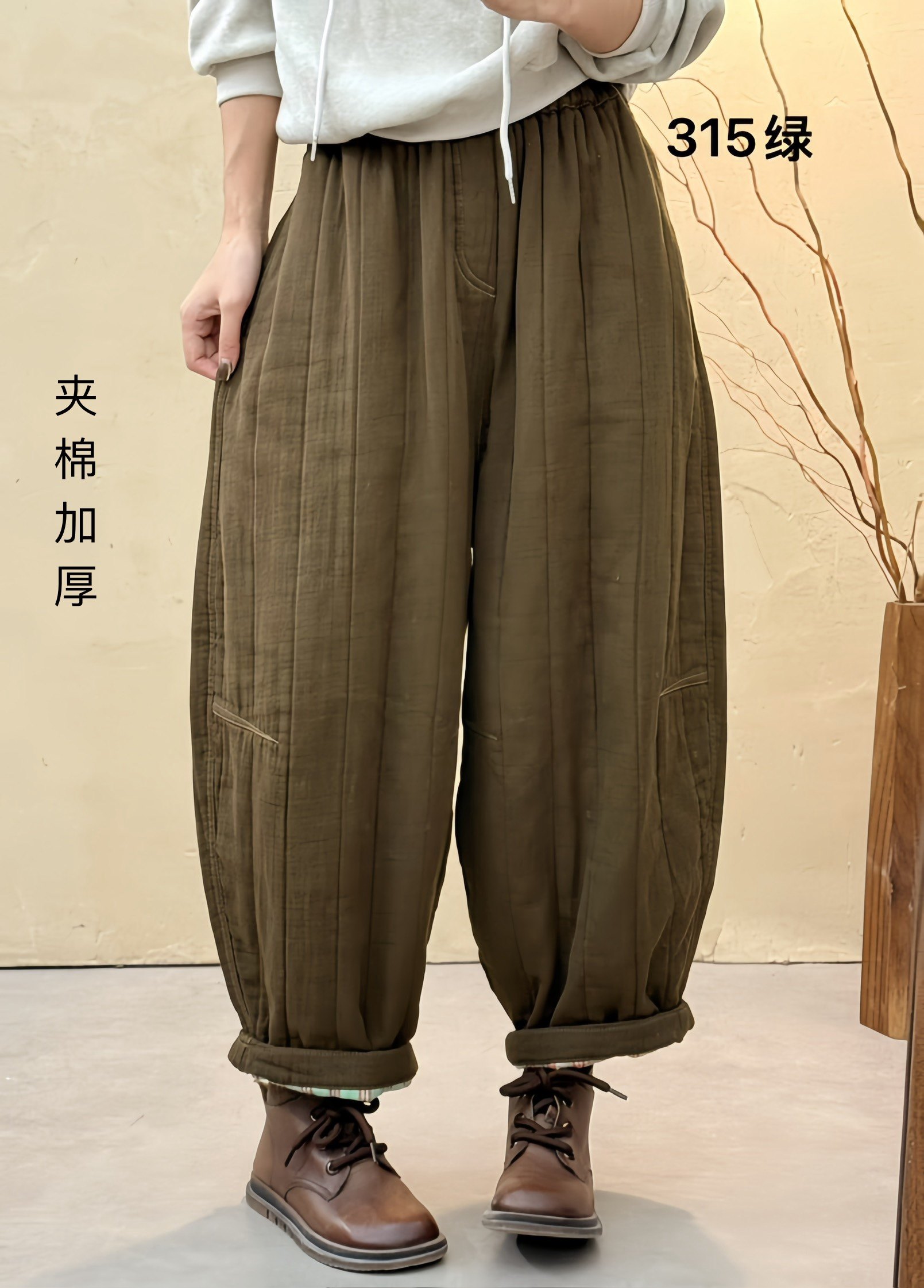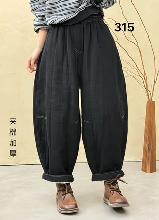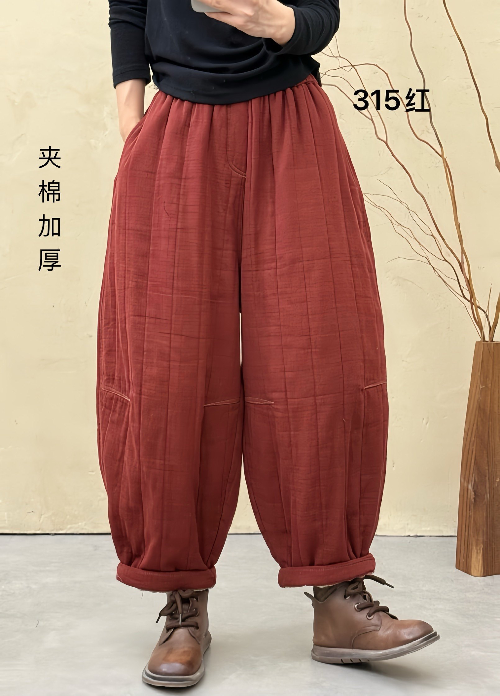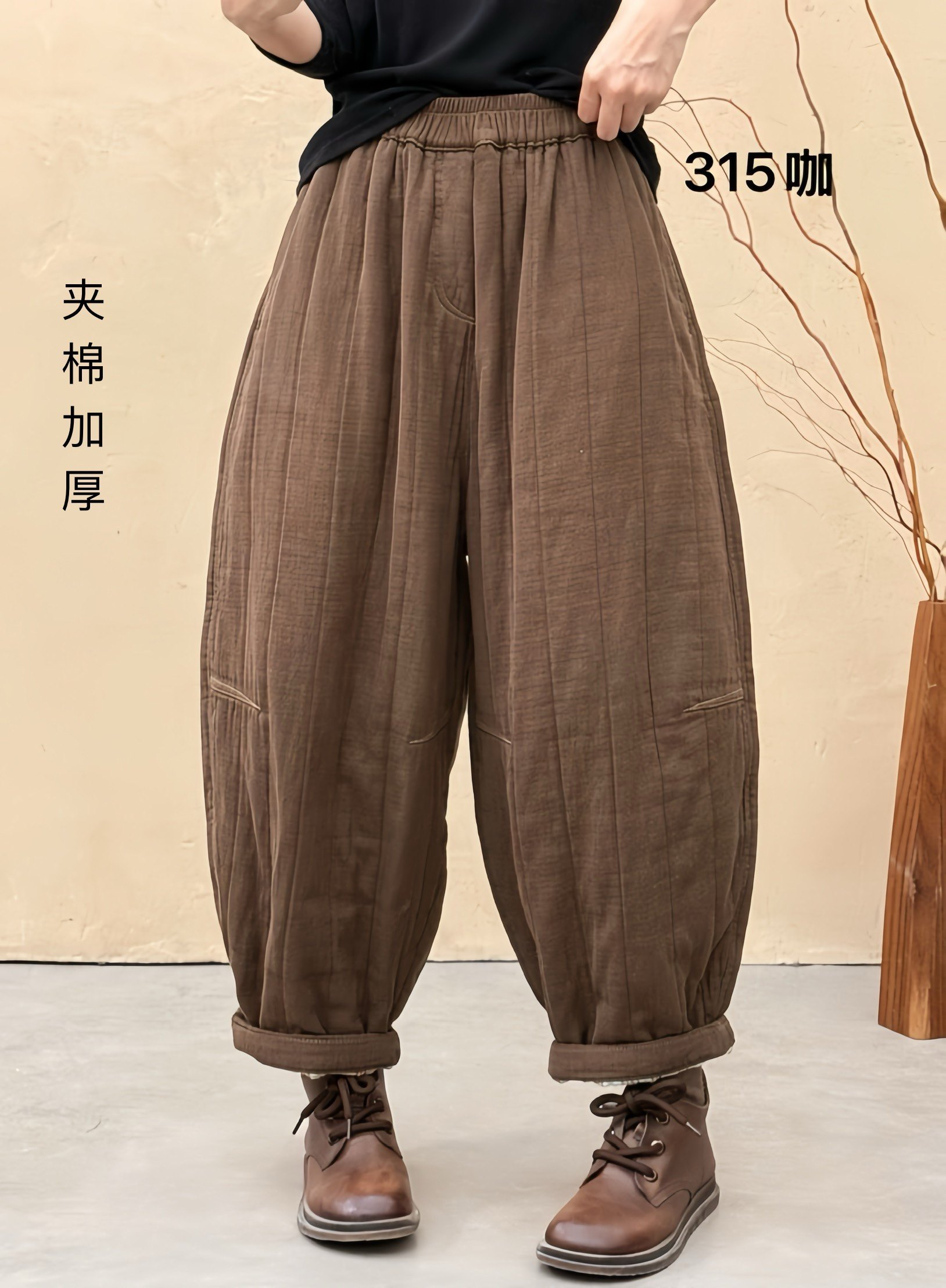 【布愫】冬季夹棉加厚宽松显瘦阔腿棉麻裤女大码版灯笼哈伦弯刀裤