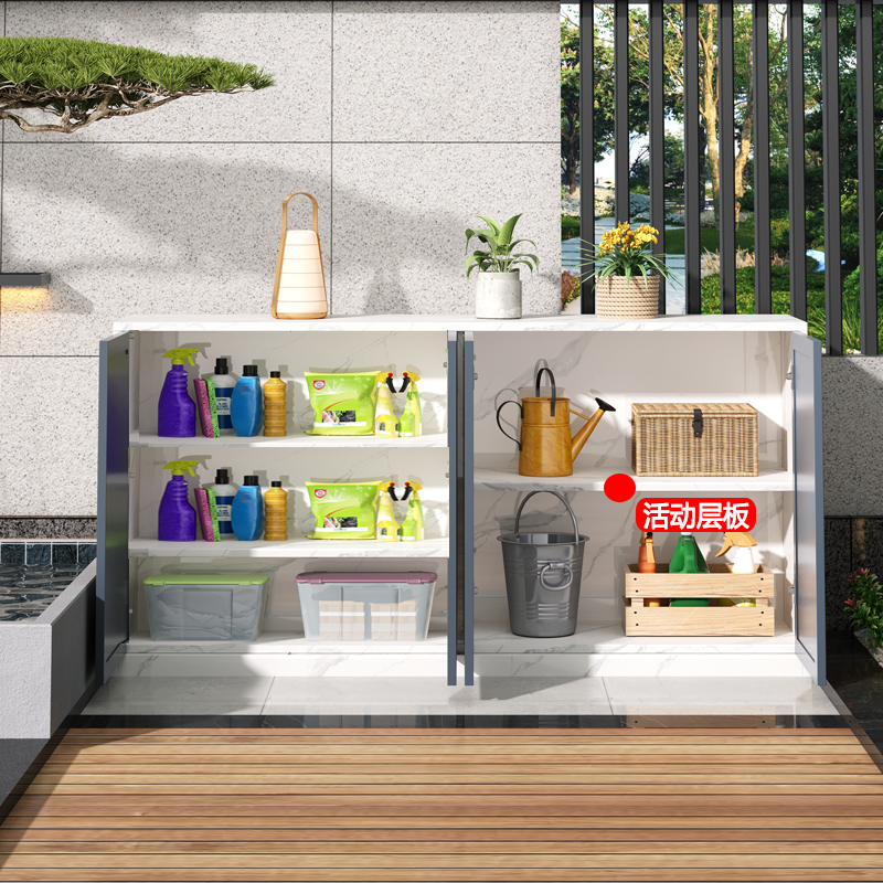 户外铝合金储物柜防水防晒别墅庭院花园收纳柜鞋柜操作台石纹格栅