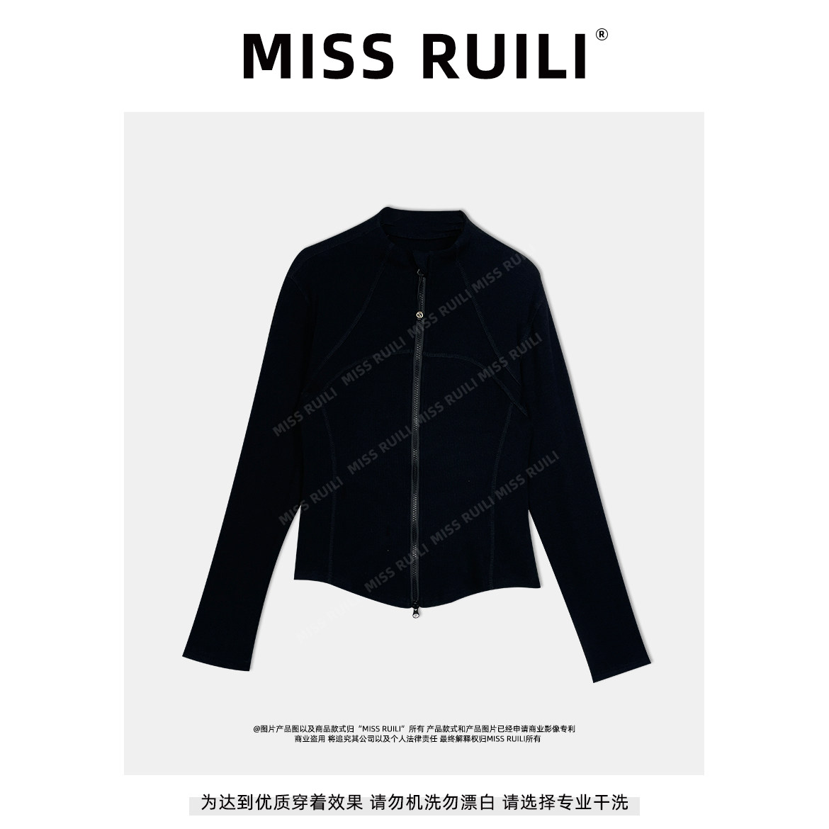 MISS RUILI定制 早春新款立领拉链卫衣显瘦修身弹力上衣F1629
