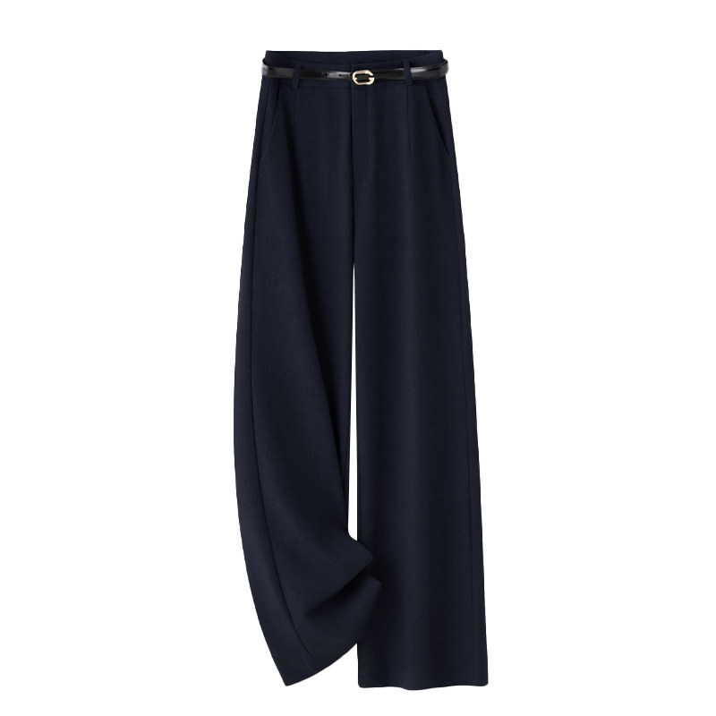 拉夏贝尔藏青色西装阔腿裤女秋季2026年新款高腰显瘦垂坠感直筒裤