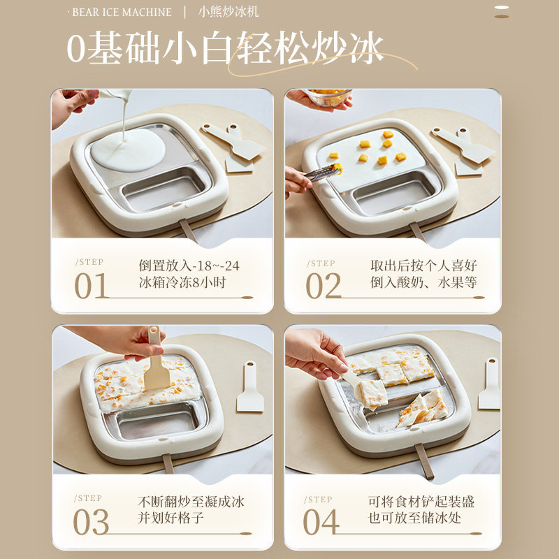 小熊炒酸奶机家用儿童不锈钢小型炒冰机自制diy免插电冰淇淋盘