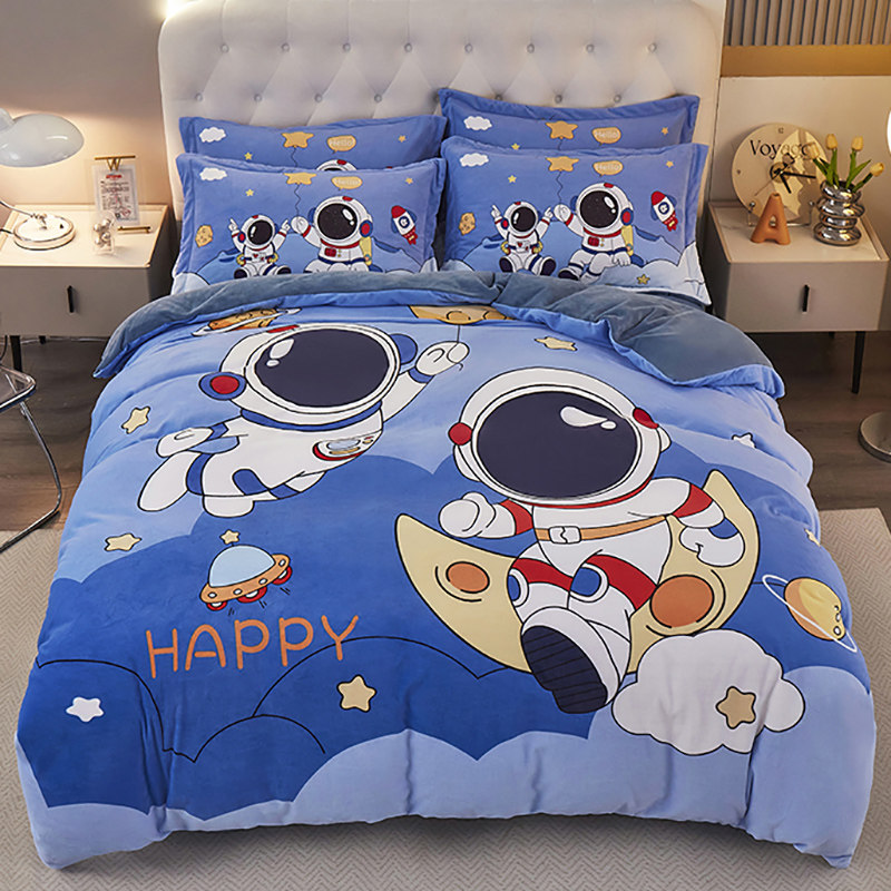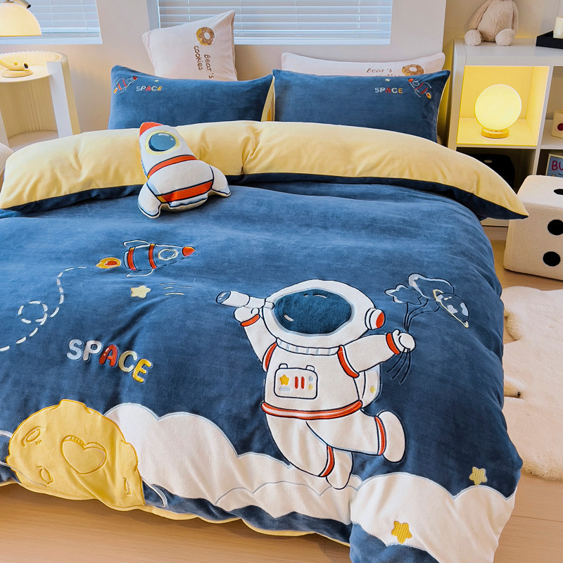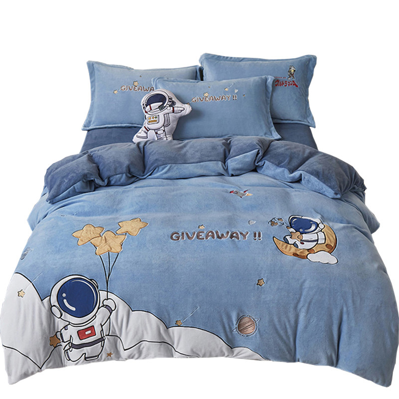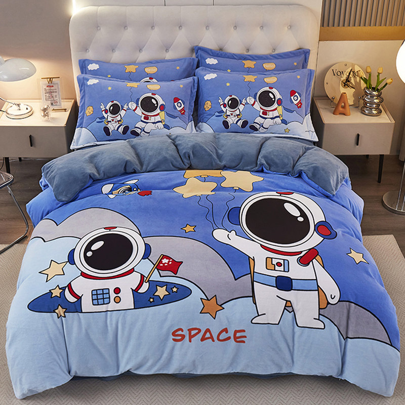 宇航员男高端牛奶绒四件套冬季加厚被套双面珊瑚绒儿童床上三件套