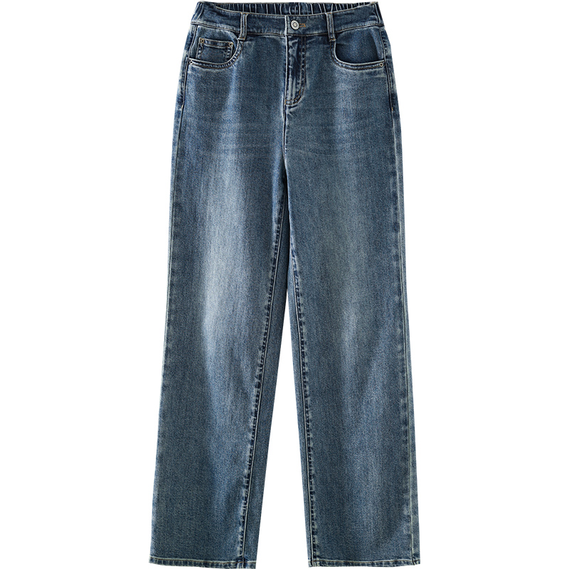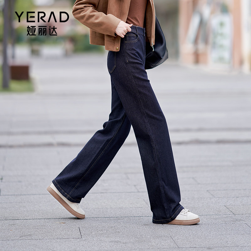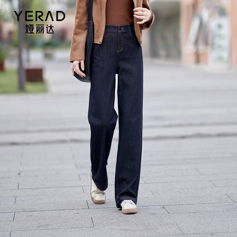 娅丽达丹宁蓝直筒牛仔裤女2025新款冬季宽松窄版阔腿裤不易掉色裤