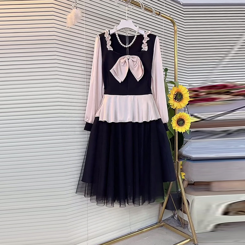 胖MM加肥荷叶肩拼接网纱裙摆连衣裙大码女装减龄秋季款显瘦淑女裙