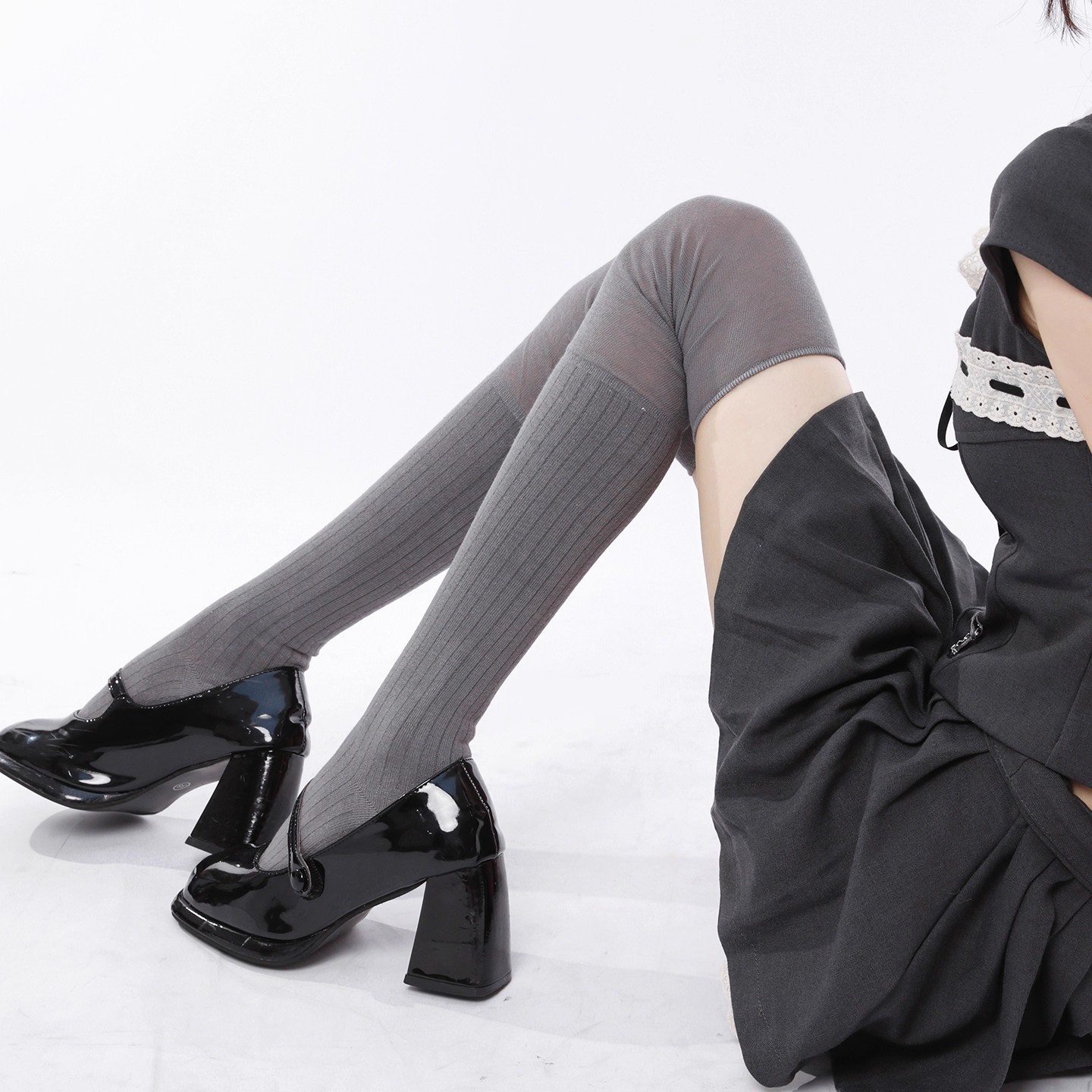 jk灰色堆堆过膝袜日系百搭秋冬款女保暖显瘦拼接长筒大腿袜配靴子