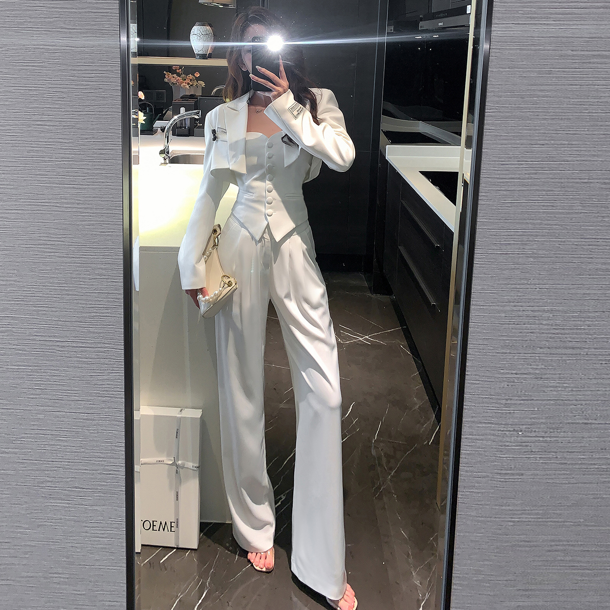 纯欲风小众套装2024新款单排扣裹胸上衣宽松休闲阔腿裤女秋西装裤