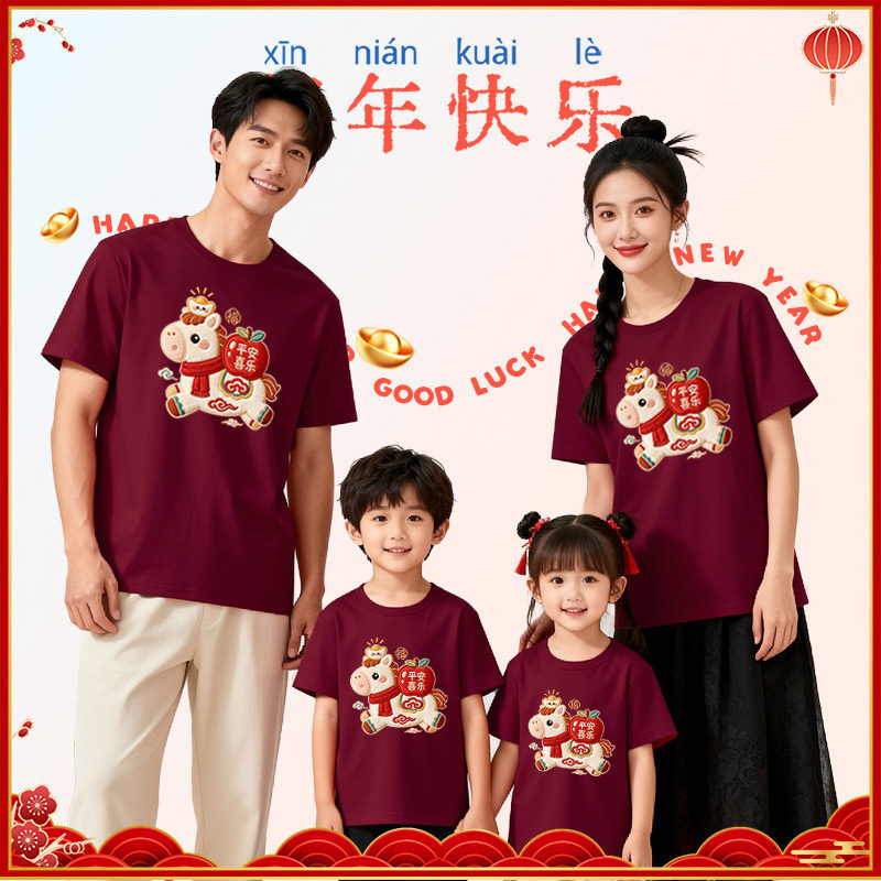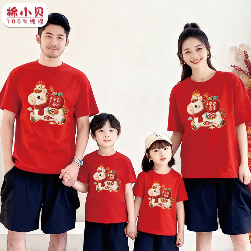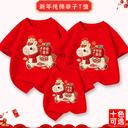 马年亲子装t恤一家三口2026过新年本命年短袖全家男女儿童拜年服