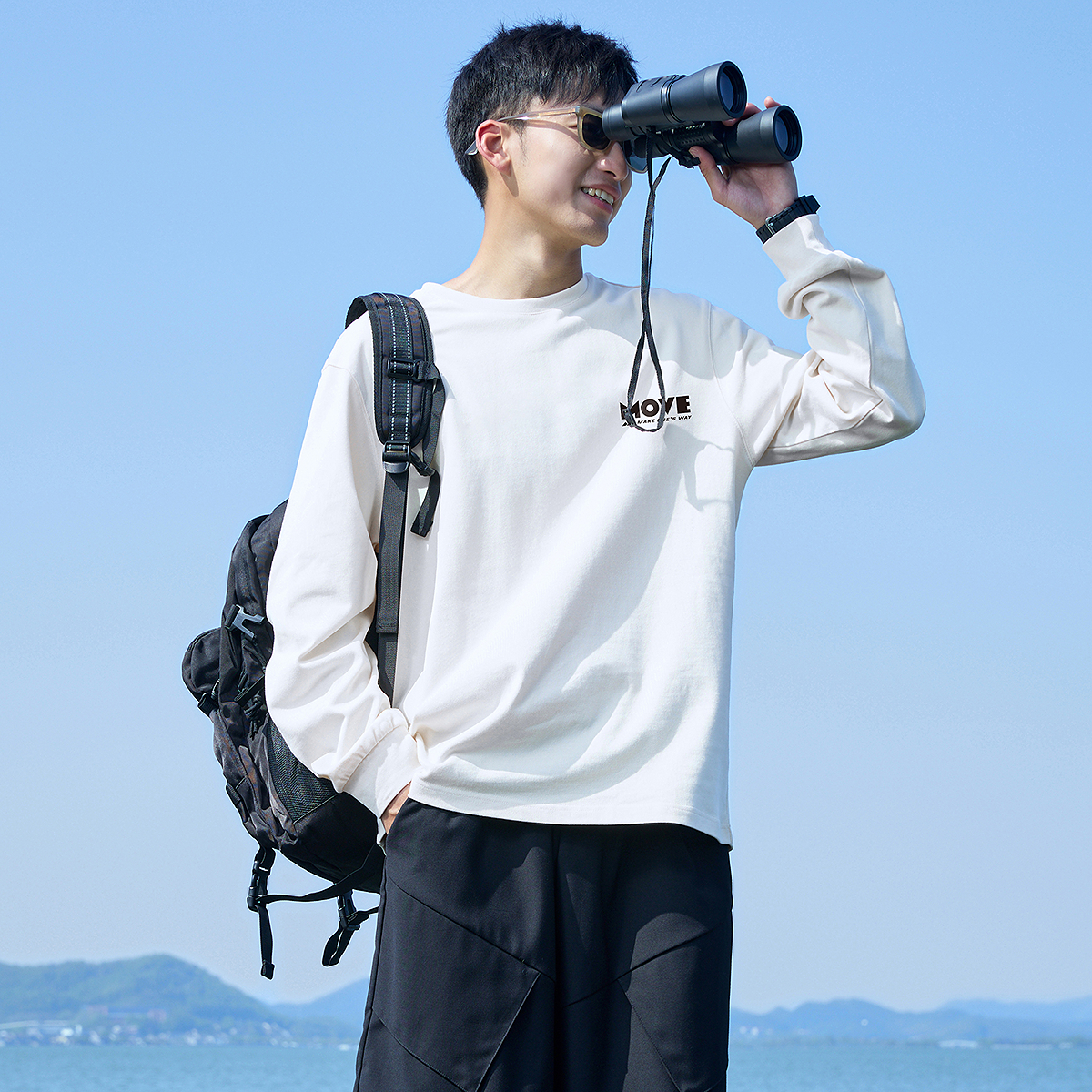 唐狮2025春季新款纯色长袖T恤男纯棉百搭宽松白色打底衫休闲上衣t