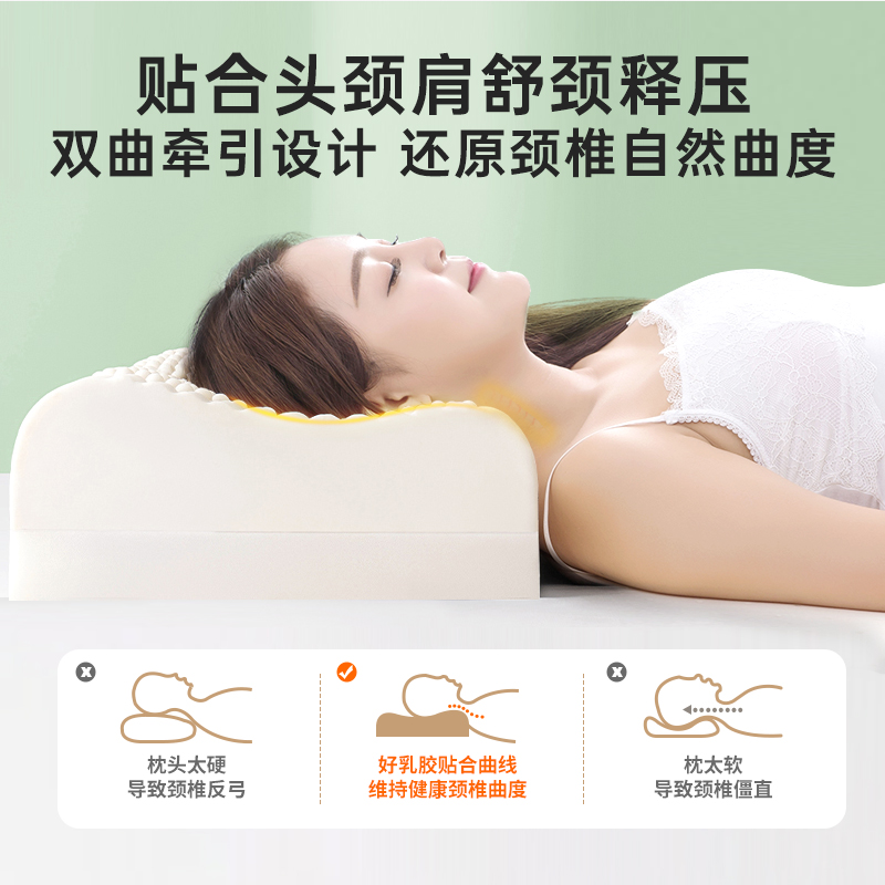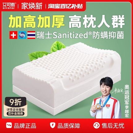 艾可麦乳胶枕头加厚加高护颈椎天然橡胶硬不塌陷助成人睡眠男高枕