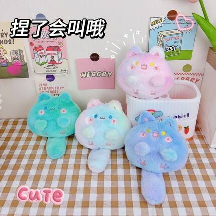 抖音爆款团团喵小挂件尾巴吱吱叫可爱猫咪毛绒玩偶团子礼物送闺蜜