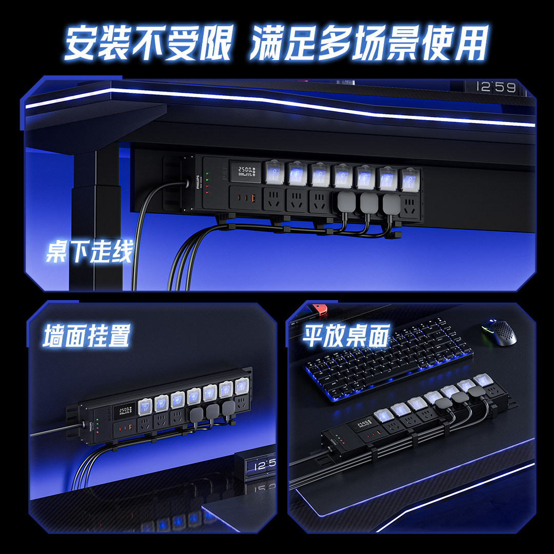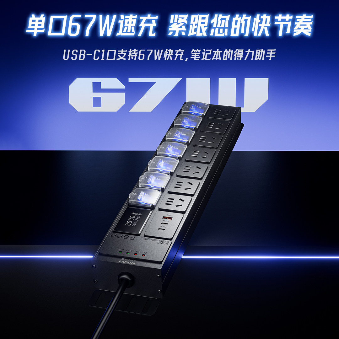 【15%】飞利浦金属pdu排插家用办公插座滤波防雷计量机柜插排接线