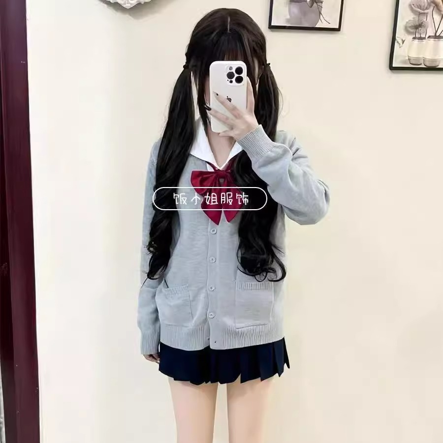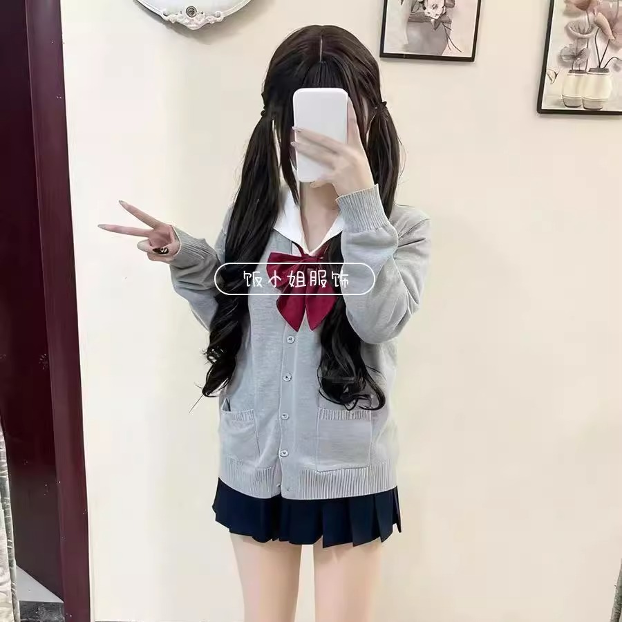 日系原创JK制服针织衫外套学院风樱花妹穿搭校供感长毛衣短裙套装