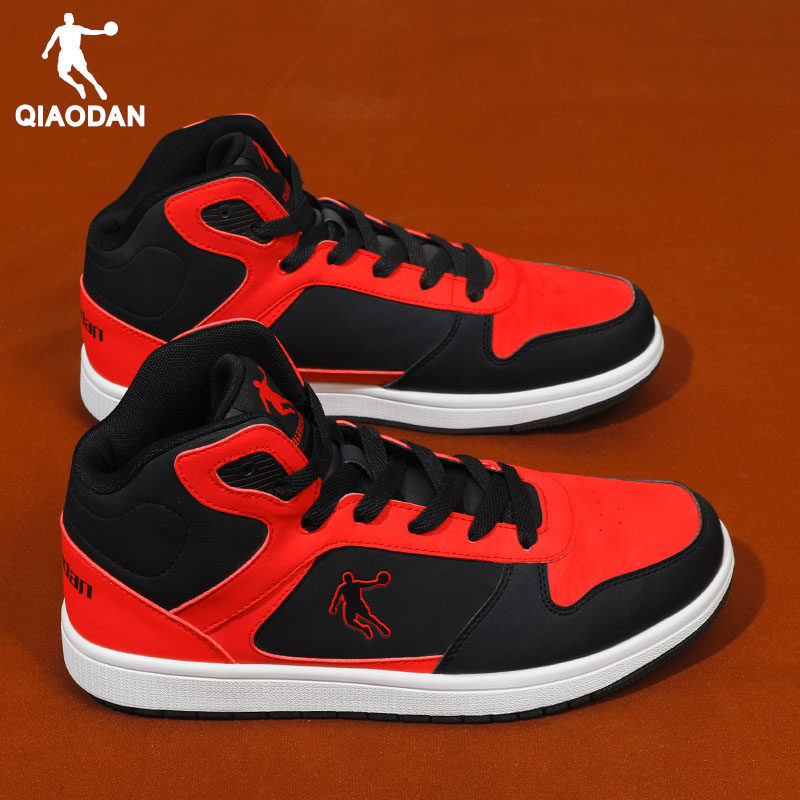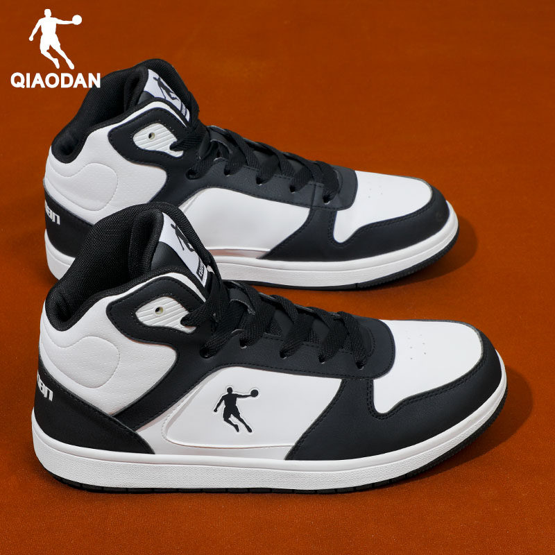 乔丹男鞋高帮鞋2026新款官方正品皮面防水板鞋男款黑色休闲运动鞋