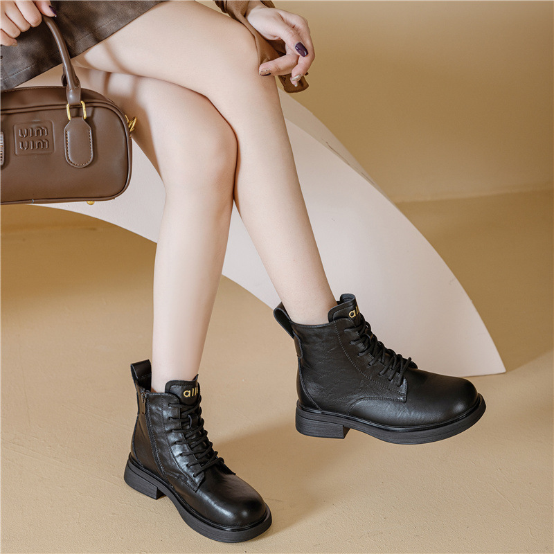 大码女靴41—43复古加绒马丁靴女英伦风2025秋冬新款百搭平底短靴