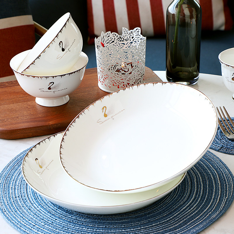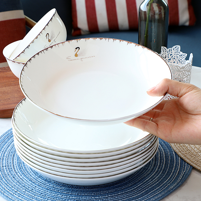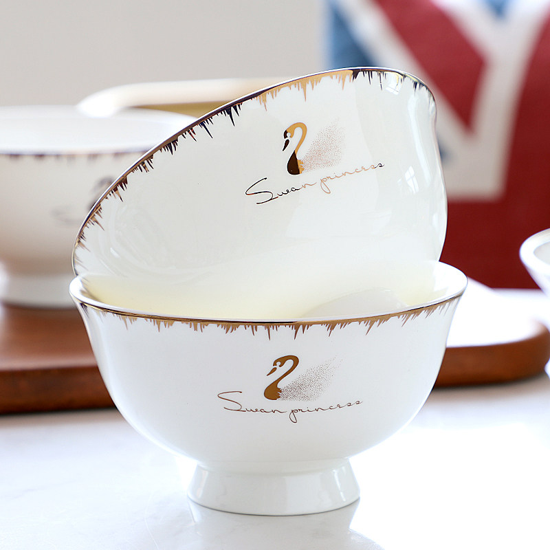 骨瓷碗碟家用套装陶瓷吃饭碗餐具北欧4.5英寸面碗米饭10个装轻奢