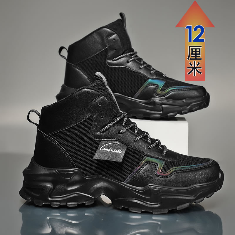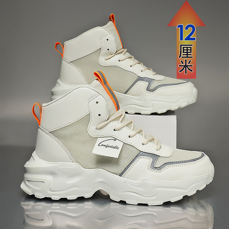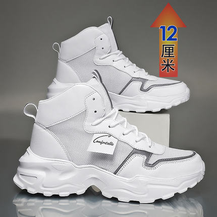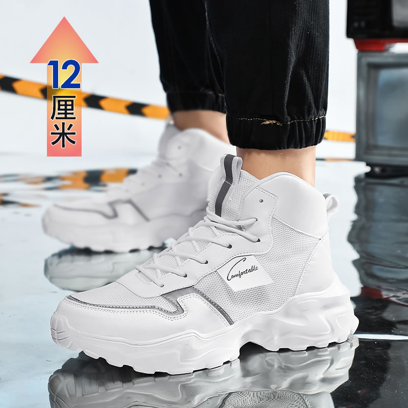 秋季网面男韩版休闲板鞋潮流内增高12CM10CM男士运动透气白色男鞋