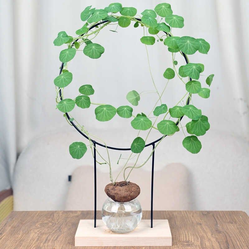 铁艺水培植物爬藤k架底座圆形铁艺爬藤支架黑色创意桌面爬藤架子