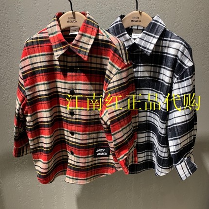 little moco专柜正品25年春男女童格纹长袖衬衫KBE1SHT002