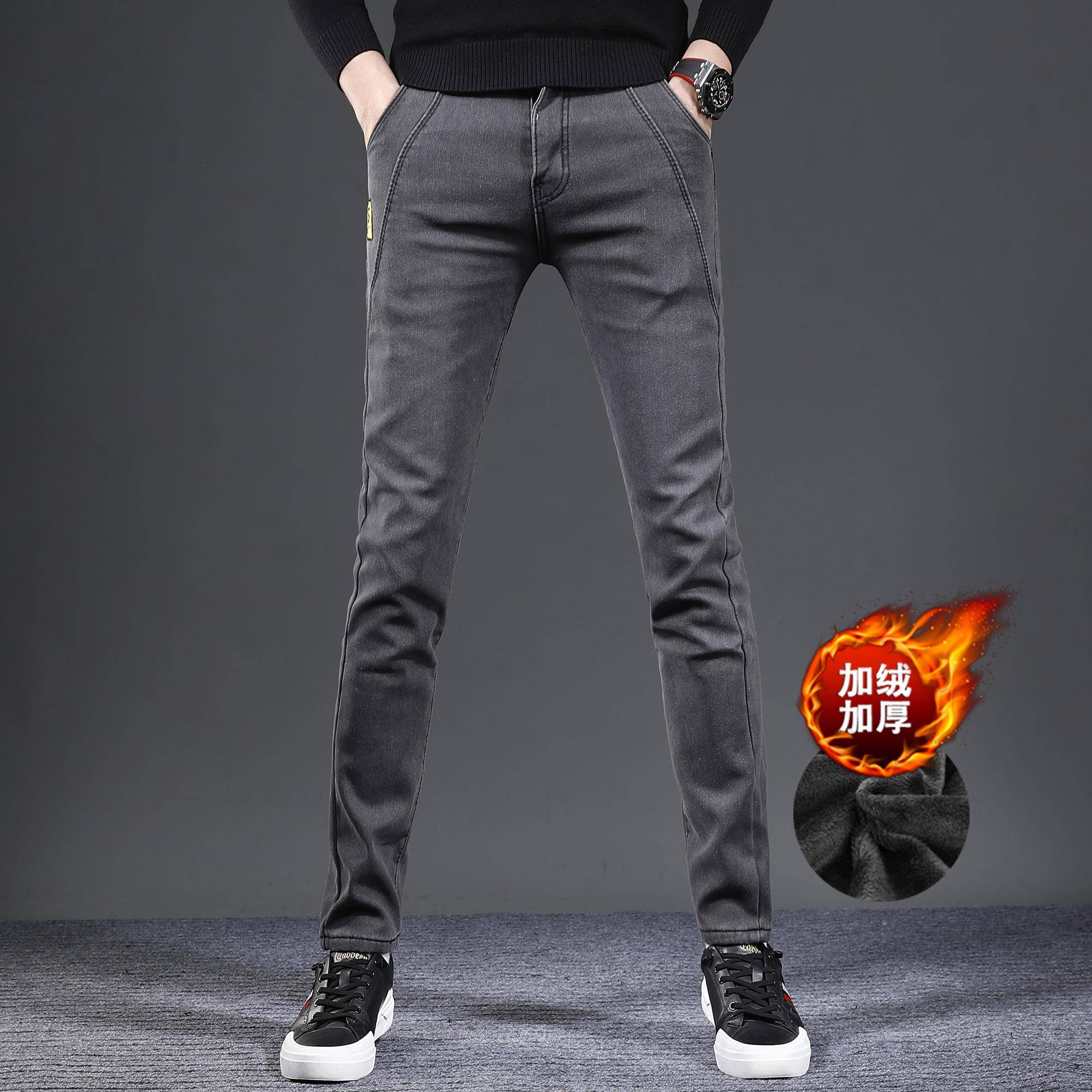 灰色加绒牛仔裤男款修身小脚2025新款秋冬款韩版弹力显瘦男1010h