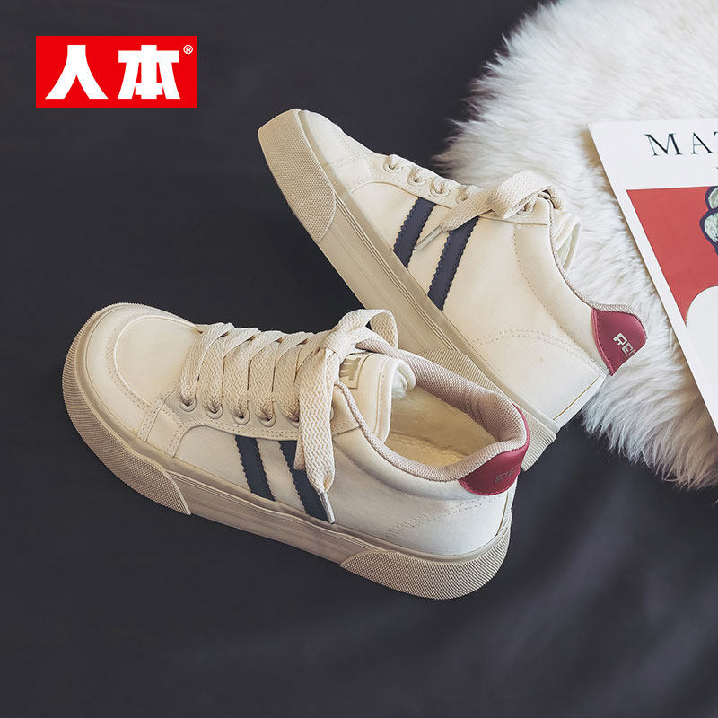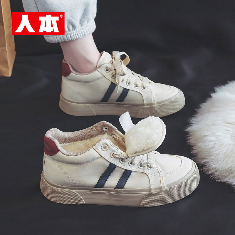 人本官方旗舰店冬季女鞋复古休闲软底加绒帆布鞋女保暖二棉鞋百搭