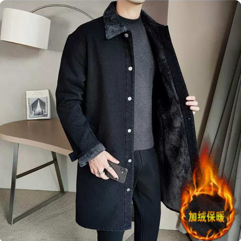 2024春秋季新款牛仔风衣男士中长款潮流百搭宽松休闲牛仔衣外套男