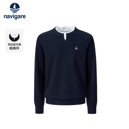 Navigare意大利小帆船假两件针织衫男士秋冬新品通勤毛衣