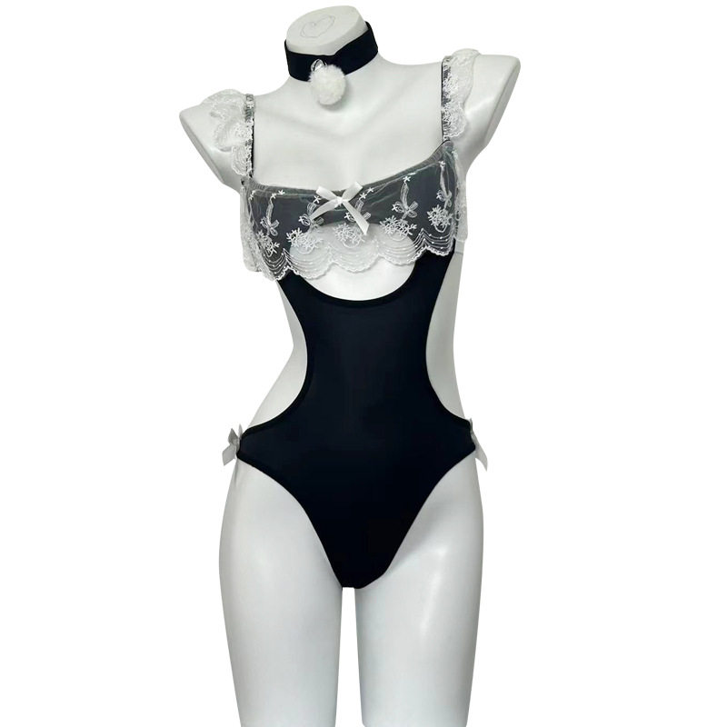 2655潮尚夜总会网红同款内衣性感吊带蕾丝花边暗扣女仆装连体衣