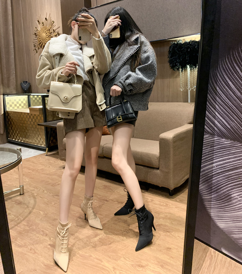 2025秋冬季新款短靴女春秋单靴系带细跟尖头高跟百搭弹力瘦瘦袜靴