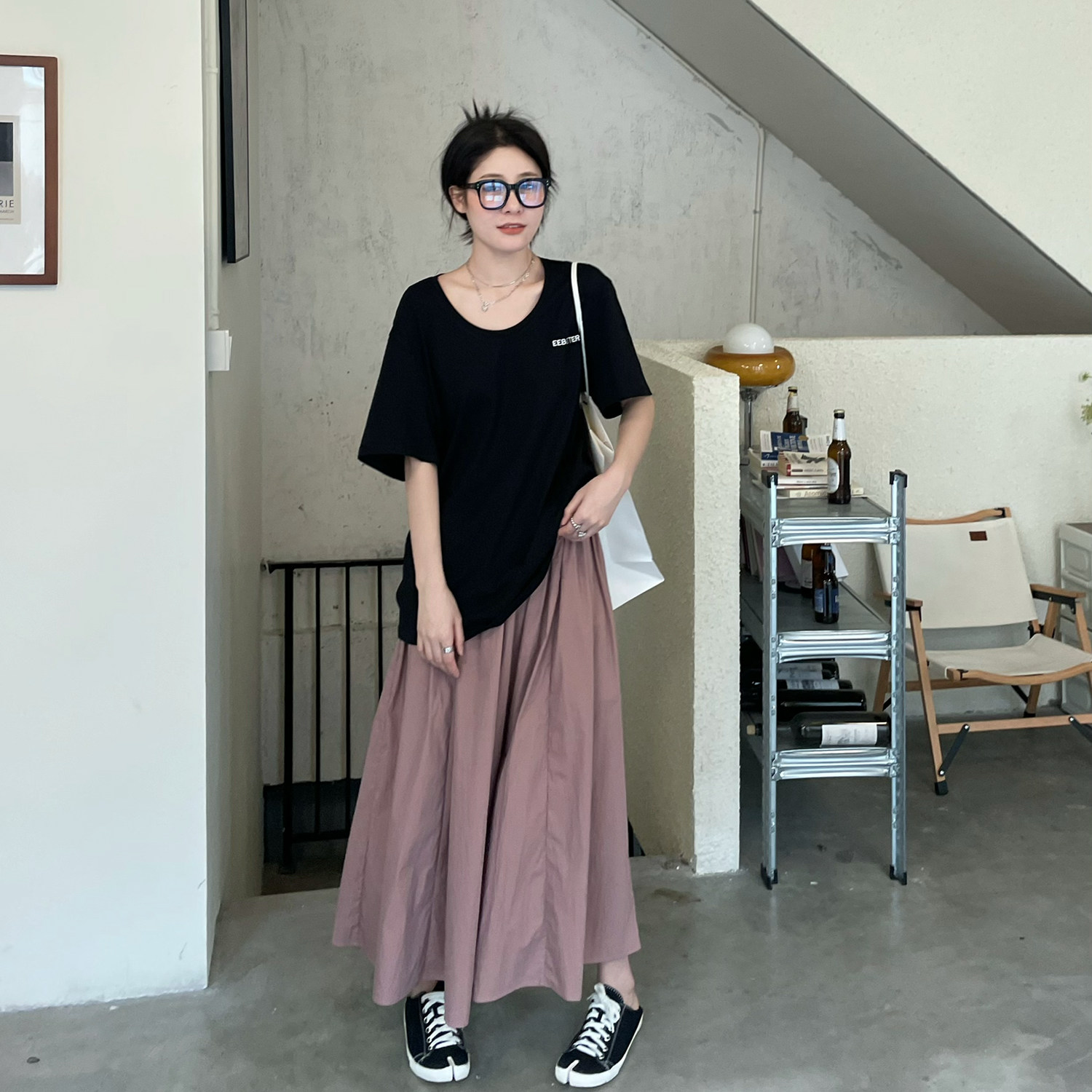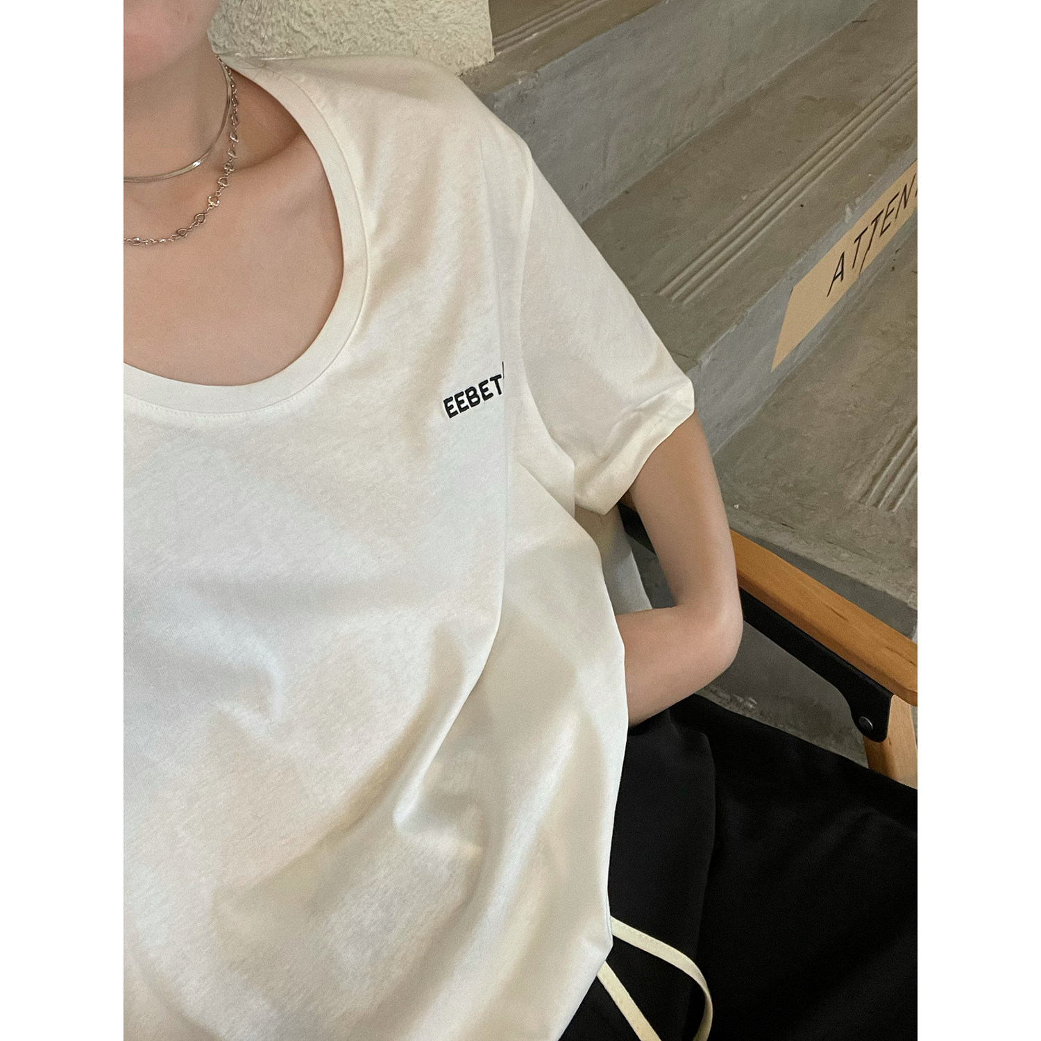 遛弯轻松锁骨oversize短袖