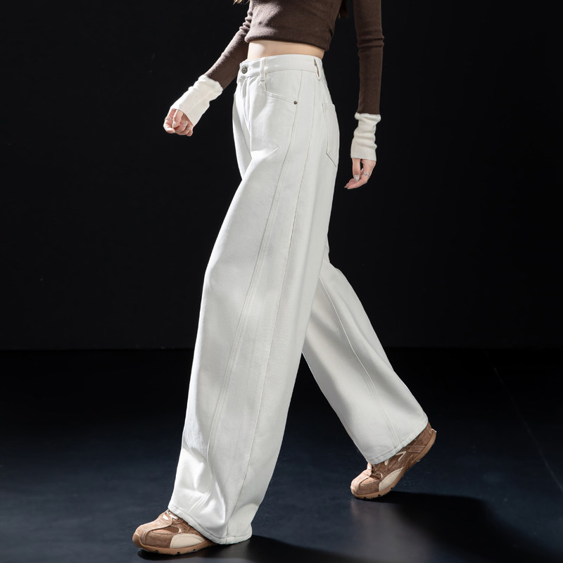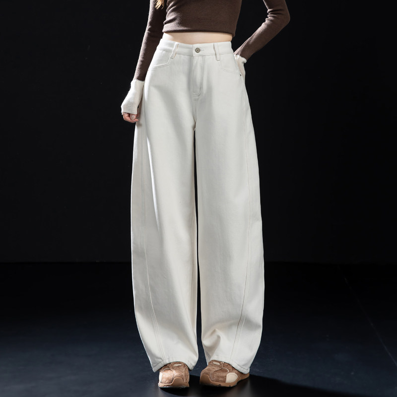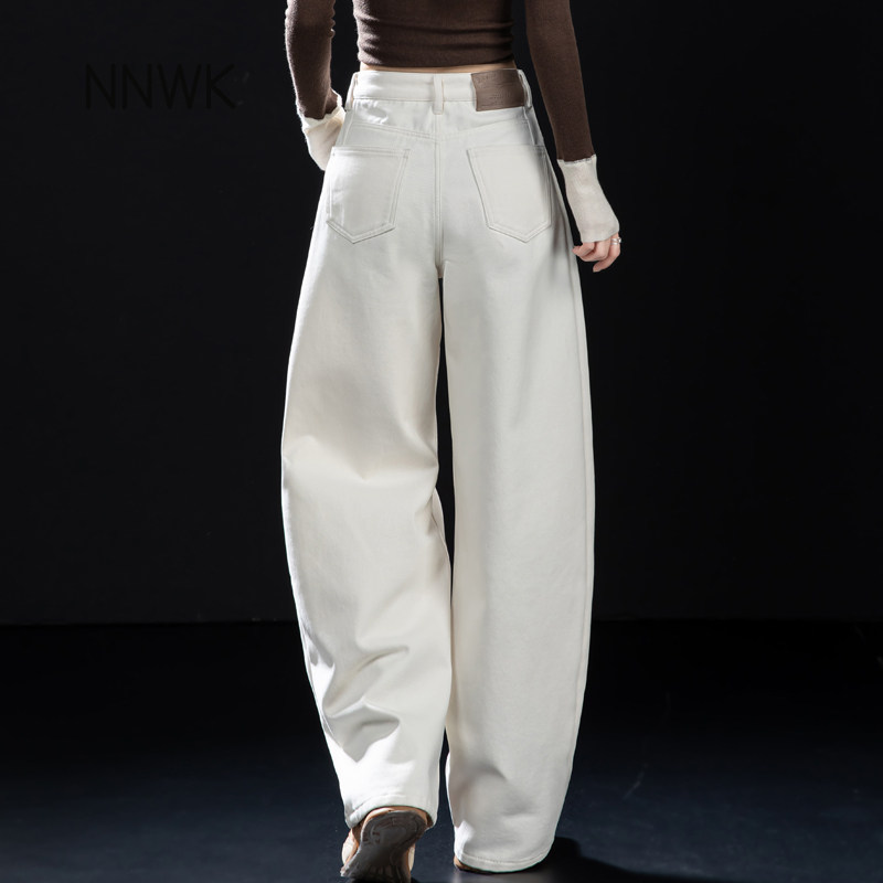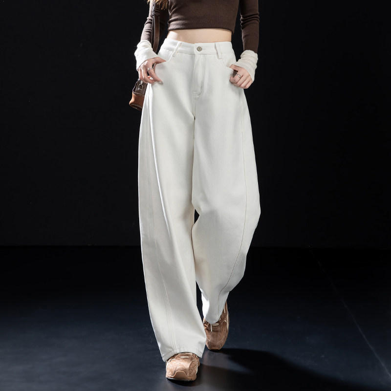 白色加绒牛仔裤女宽松镰刀哈伦裤