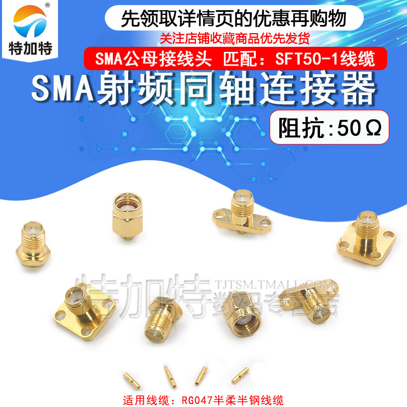 SMA-JB1 匹配047半柔半钢线缆 SFT50-1接线头 SMA-KB1/KFB1带法兰