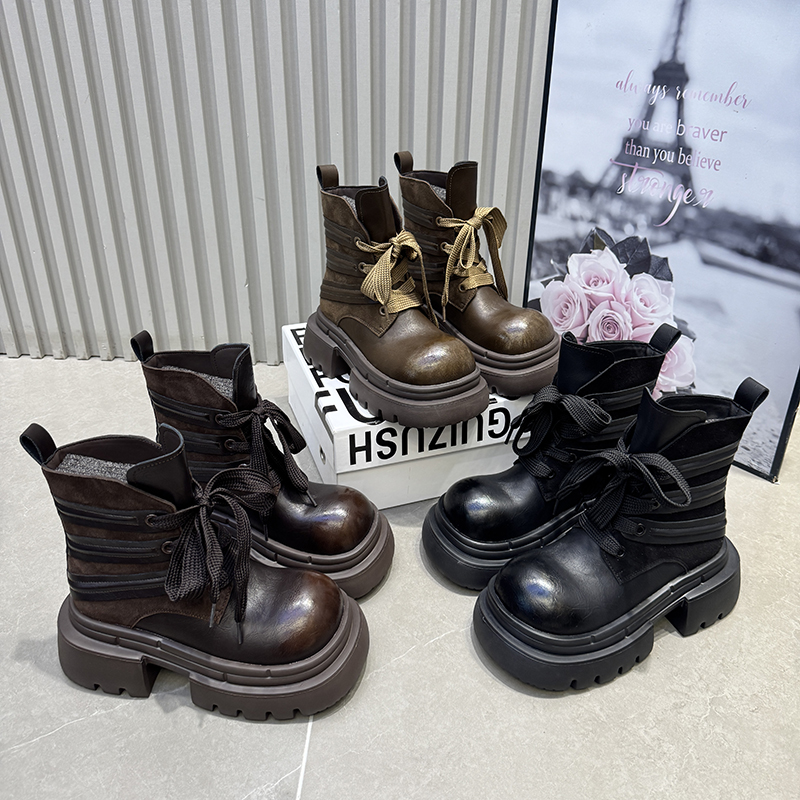 英伦风马丁靴女透气时尚圆头百搭系带防滑休闲机车靴女靴子8866-1