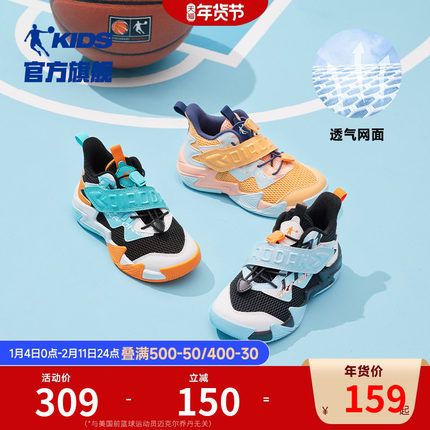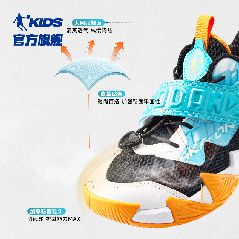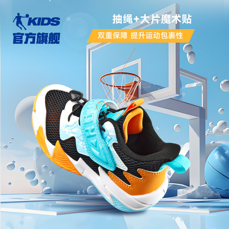 乔丹童鞋男童篮球鞋2026春秋魔术贴网面透气儿童鞋子男小童运动鞋