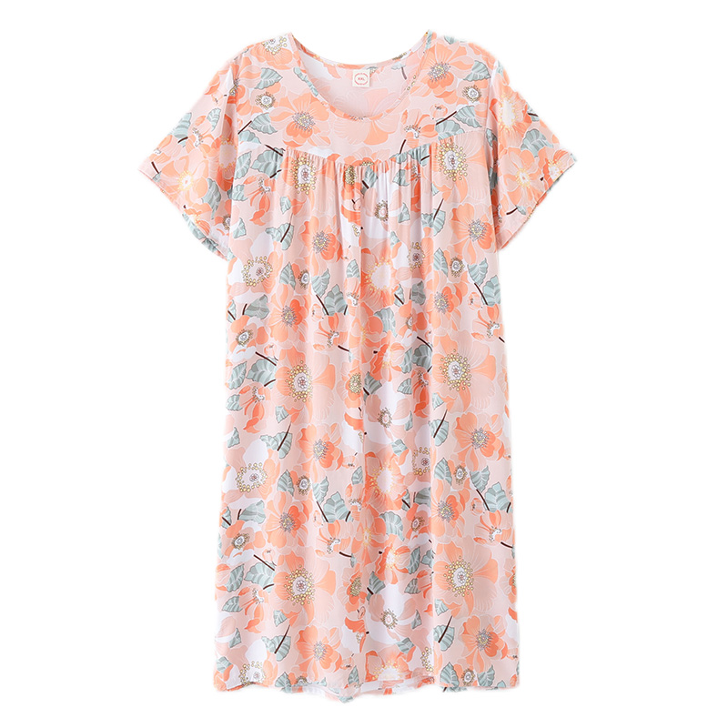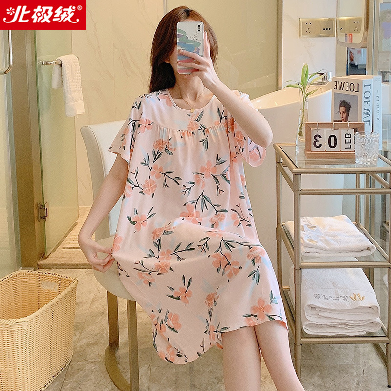 北极绒睡裙女夏季甜美可爱学生睡衣加大码圆领短袖棉绸家居服薄款